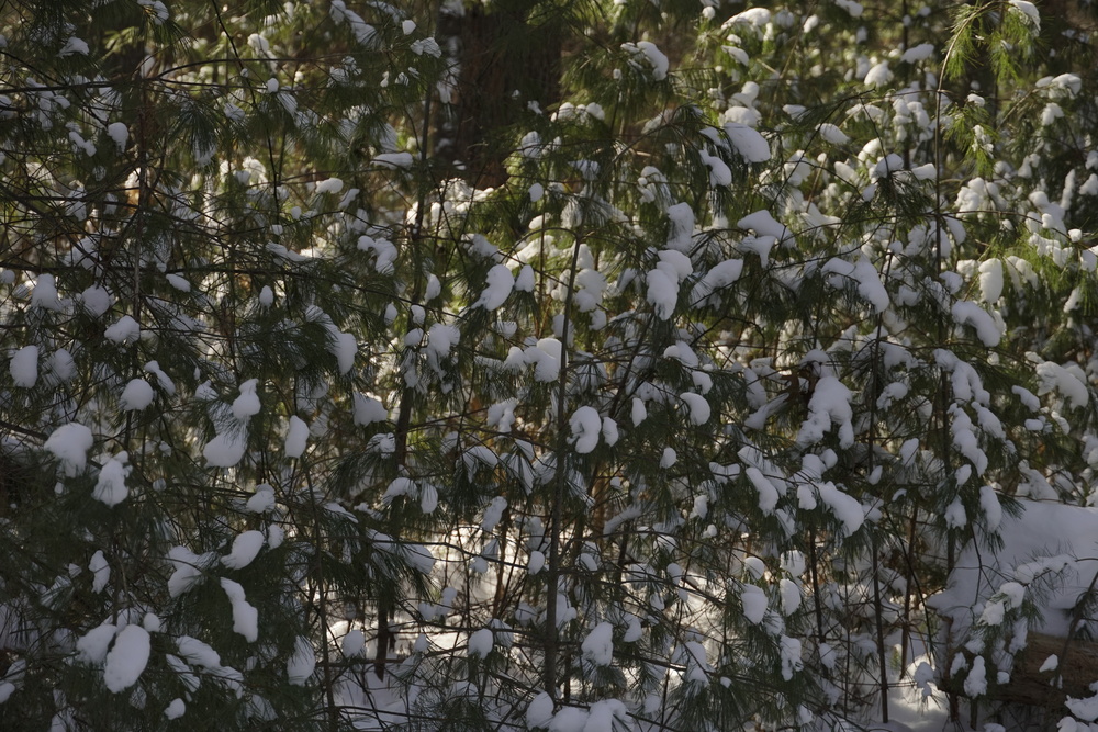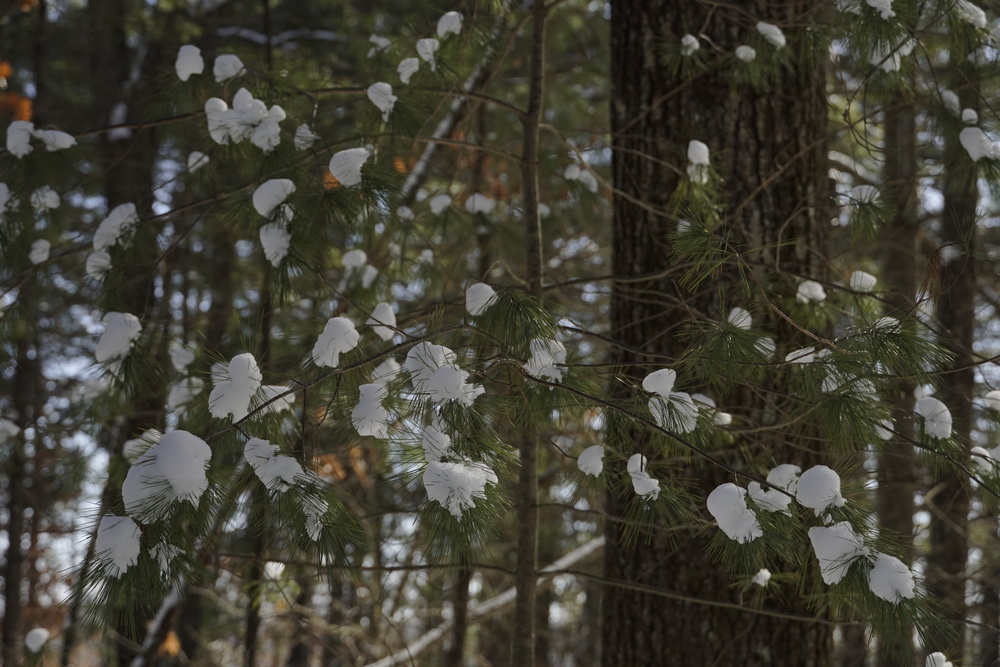 A nice snowy day. The only problem: as I walked the trail, snow kept pelting me from the trees, as if nature decided to play with snowballs.