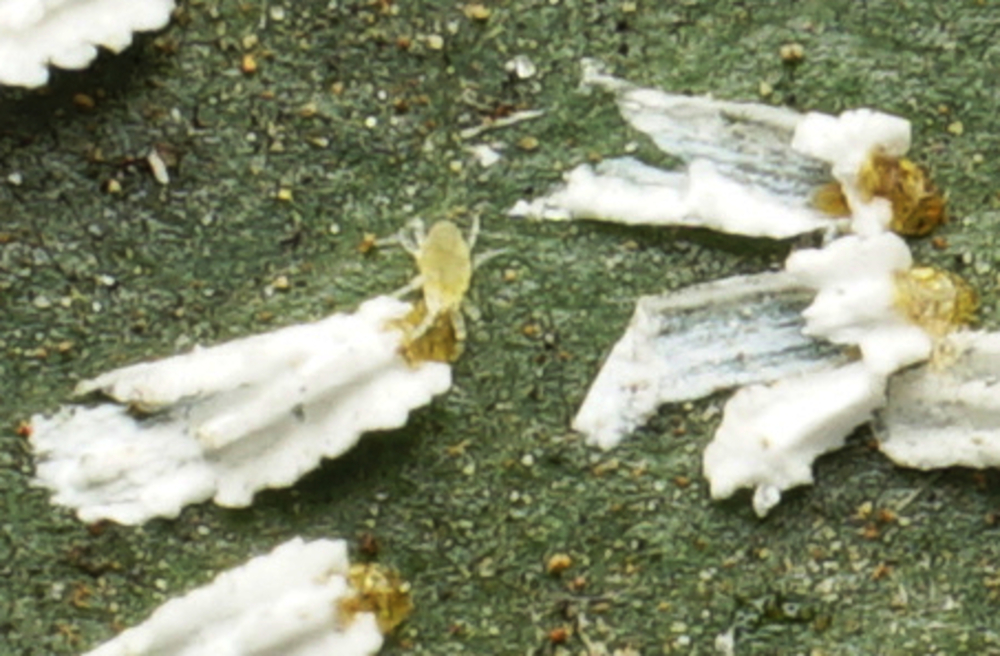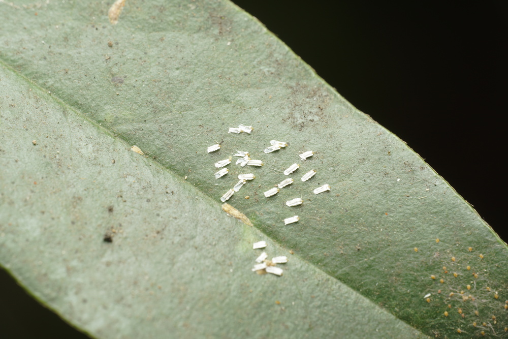 I first thought this was a type of barklouse, but iNaturalist suggests Trialeurodes, the greenhouse whitefly, in
