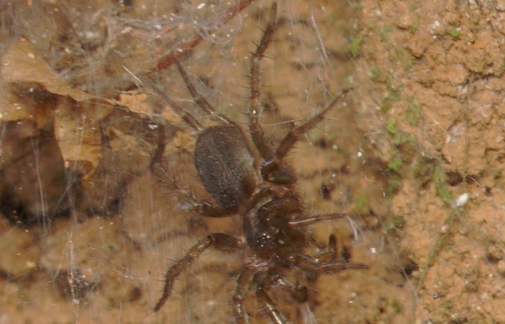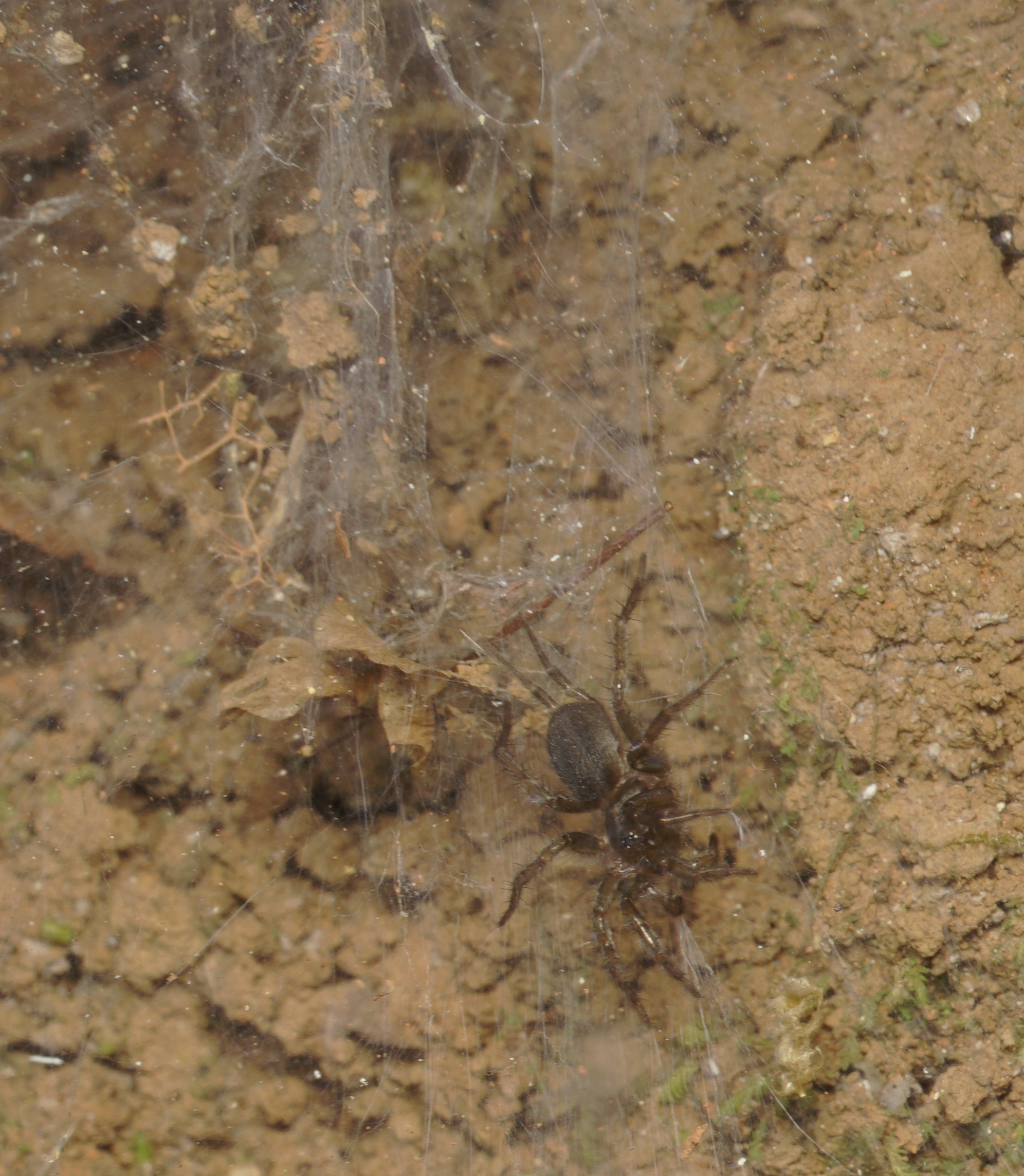 Note that Eresids are cribellate spiders, which means that they have an organ called the cribellum that “whips” the strands of silk coming out so it becomes tangled, which in turn can get their prey tangled up in it. Other spiders that make webs to catch prey would typically use special strands of sticky silk; cribellates do not do that.