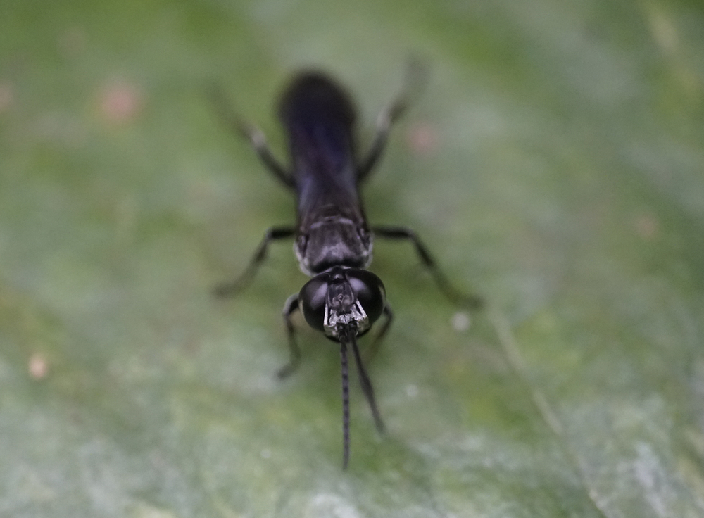 A gorgeous black soldier fly, perhaps genus Hermetia: