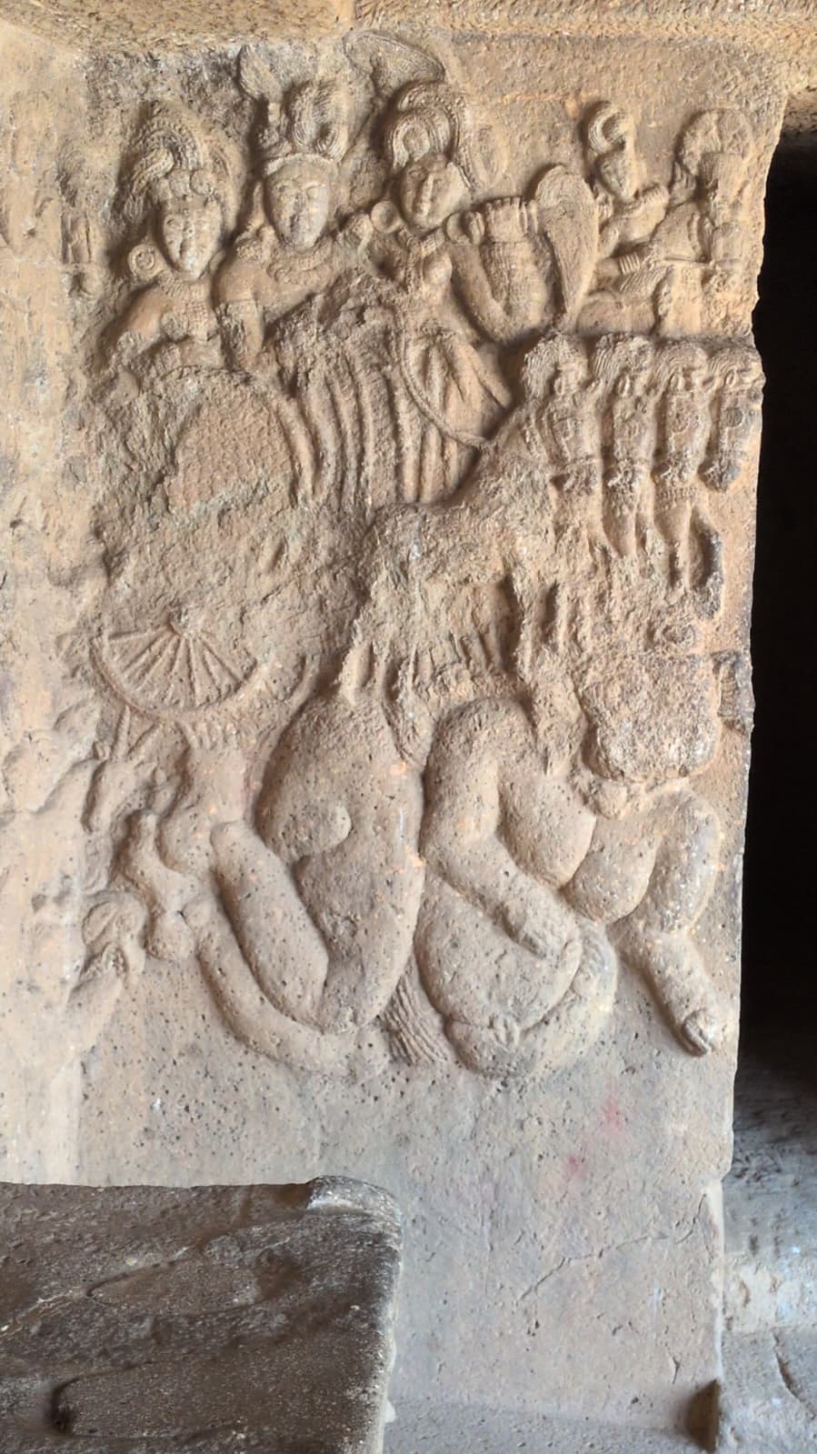 Bhaje caves. A few centuries BCE, perhaps. Fascinating stupas and Buddhist/Hindu/Greek/Babylonian (!!!) imagery