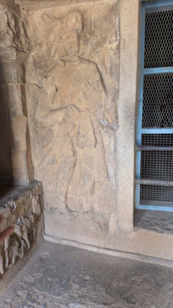 This was explained as a carving of the Greek (Gandharan?) Buddhist king who sponsored the construction of these caves financially.