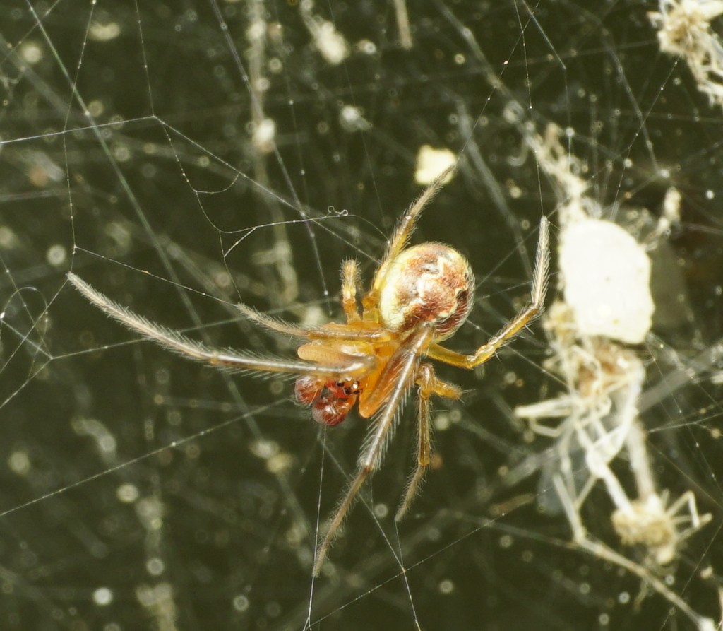 But first, spiders from right outside my front door. Shame on me for not noticing them earlier! This is Theridion. They can actually be social spiders, and there were multiple of them in this web.