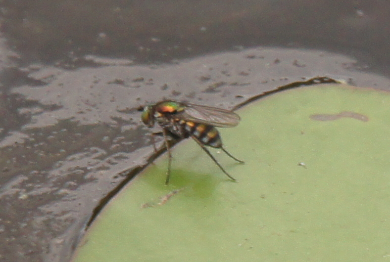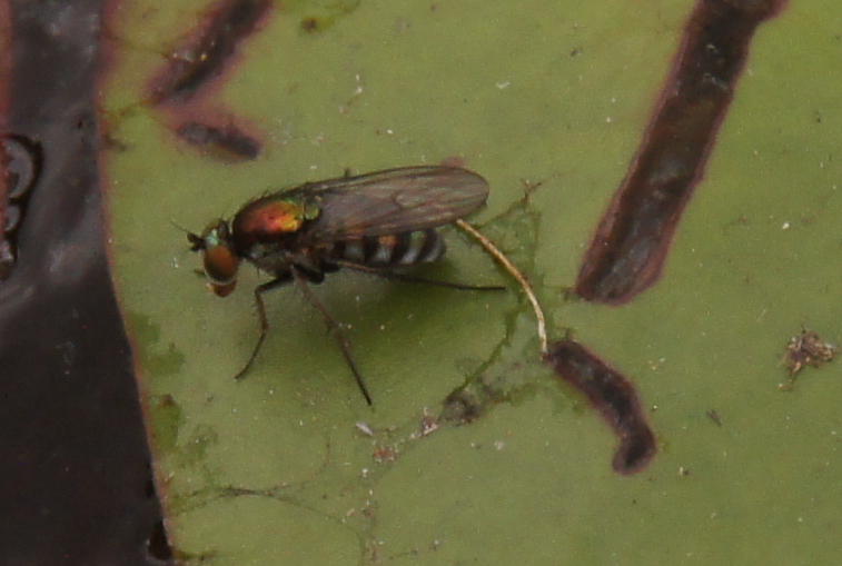 These flies were everywhere. Probably Dolichopodidae, certainly gorgeous: