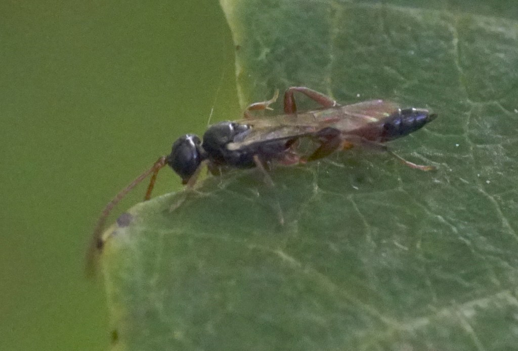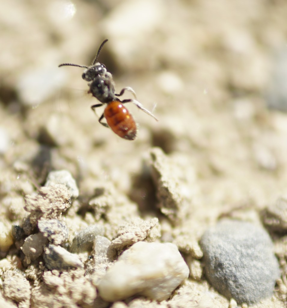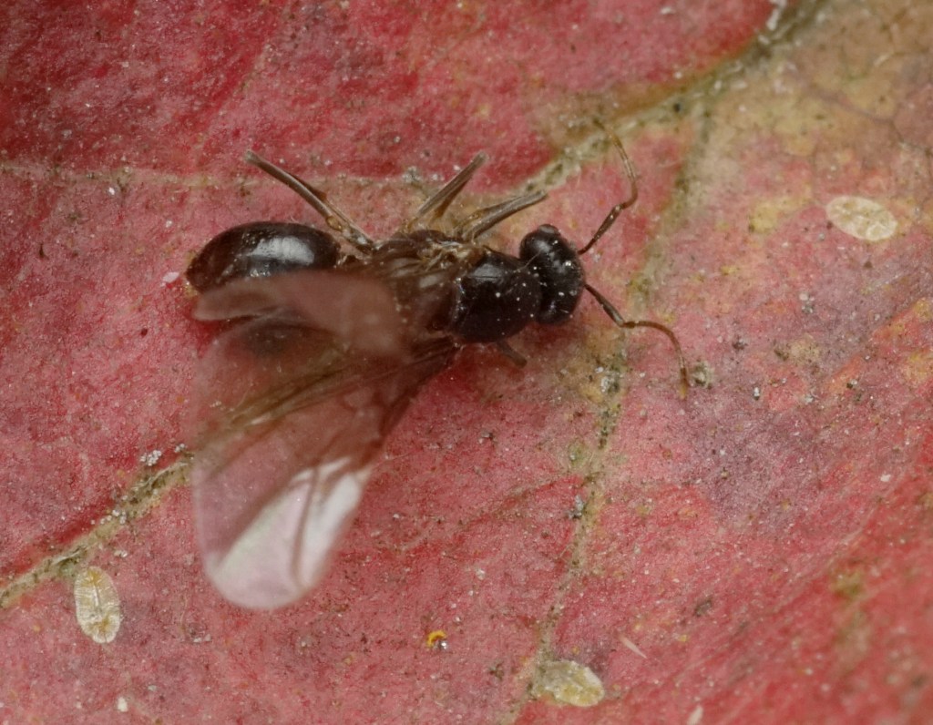 An ant alate. “Crematogaster cerasi or less likely C. lineolata”.