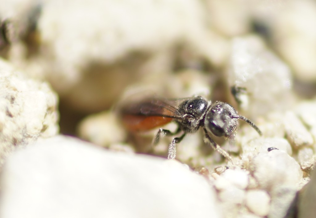 My guess is that we caught her in the act of invading another bee’s burrow to lay her eggs! Very cool.