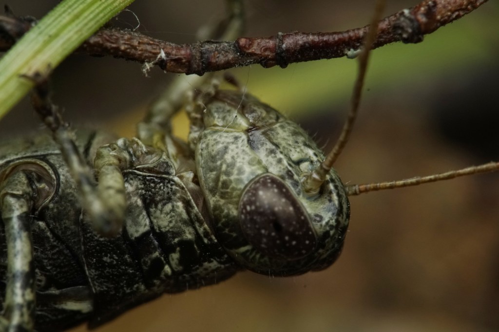 I’m using new apparatus for macro photographs. This grasshopper allowed me to make full use of the zoom. Melanoplus punctulatus.