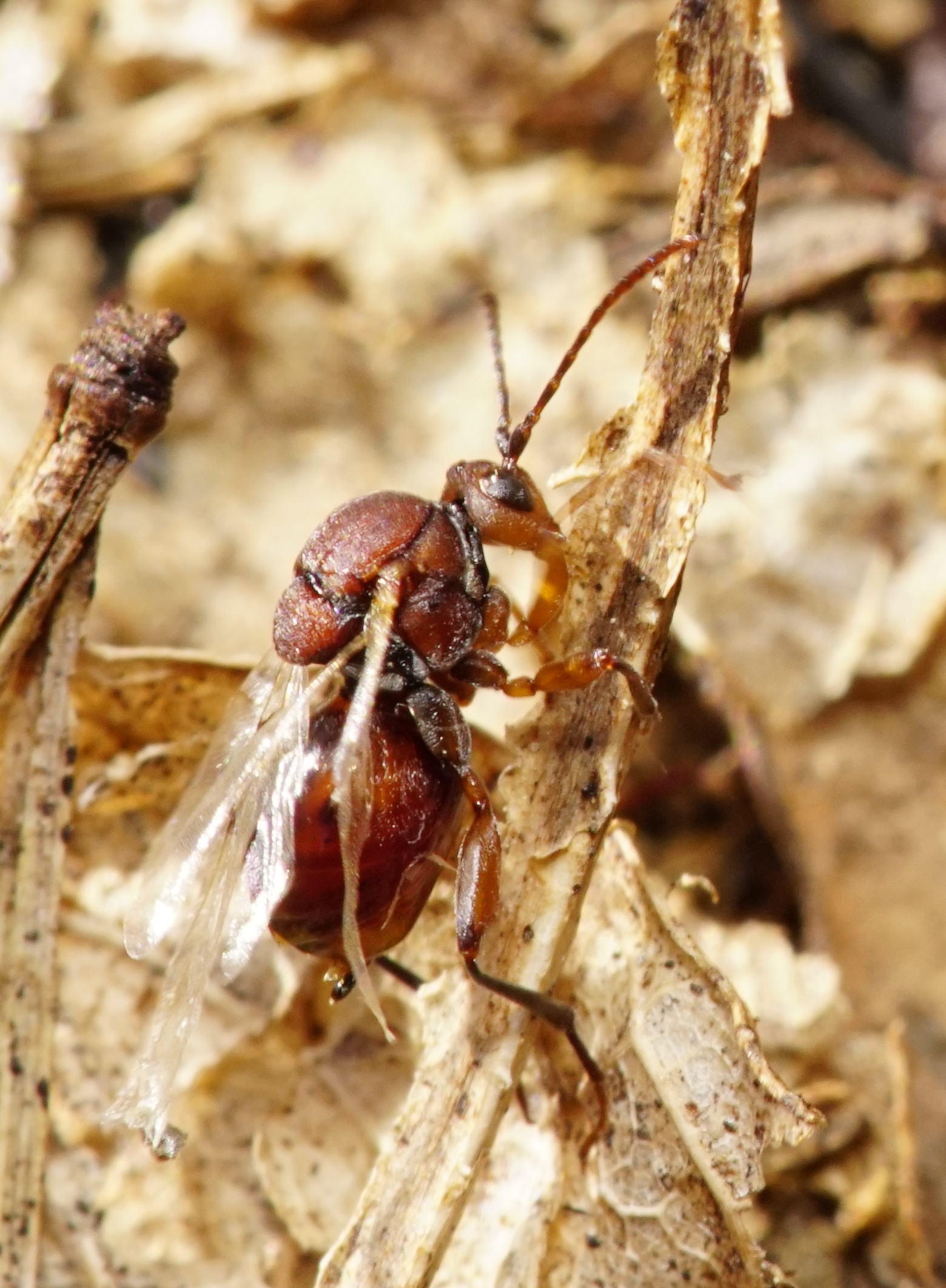 Cerambicidae! (I initially thought Staphylinidae). Molorchus bimaculatus.