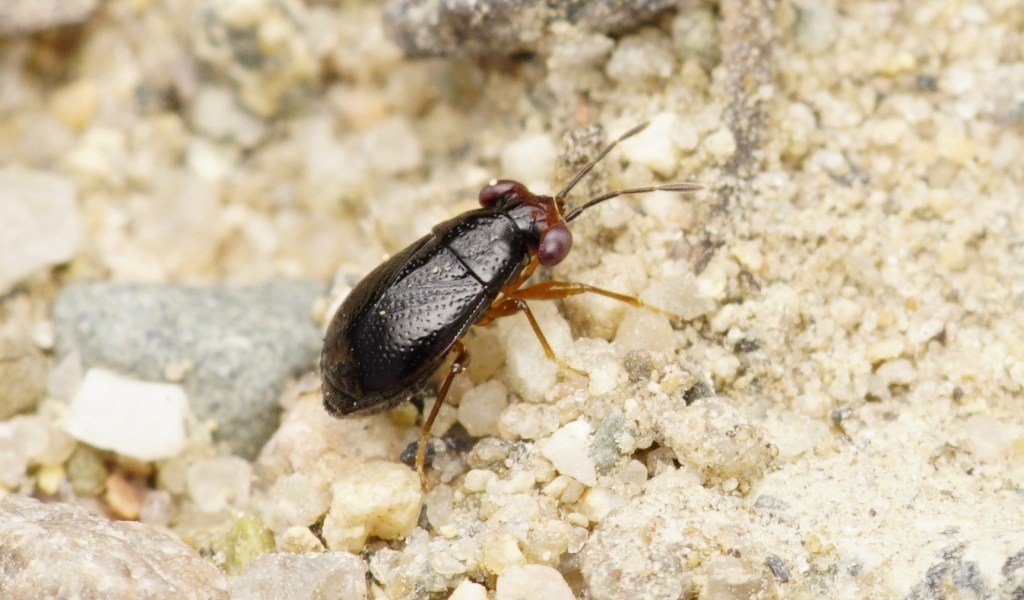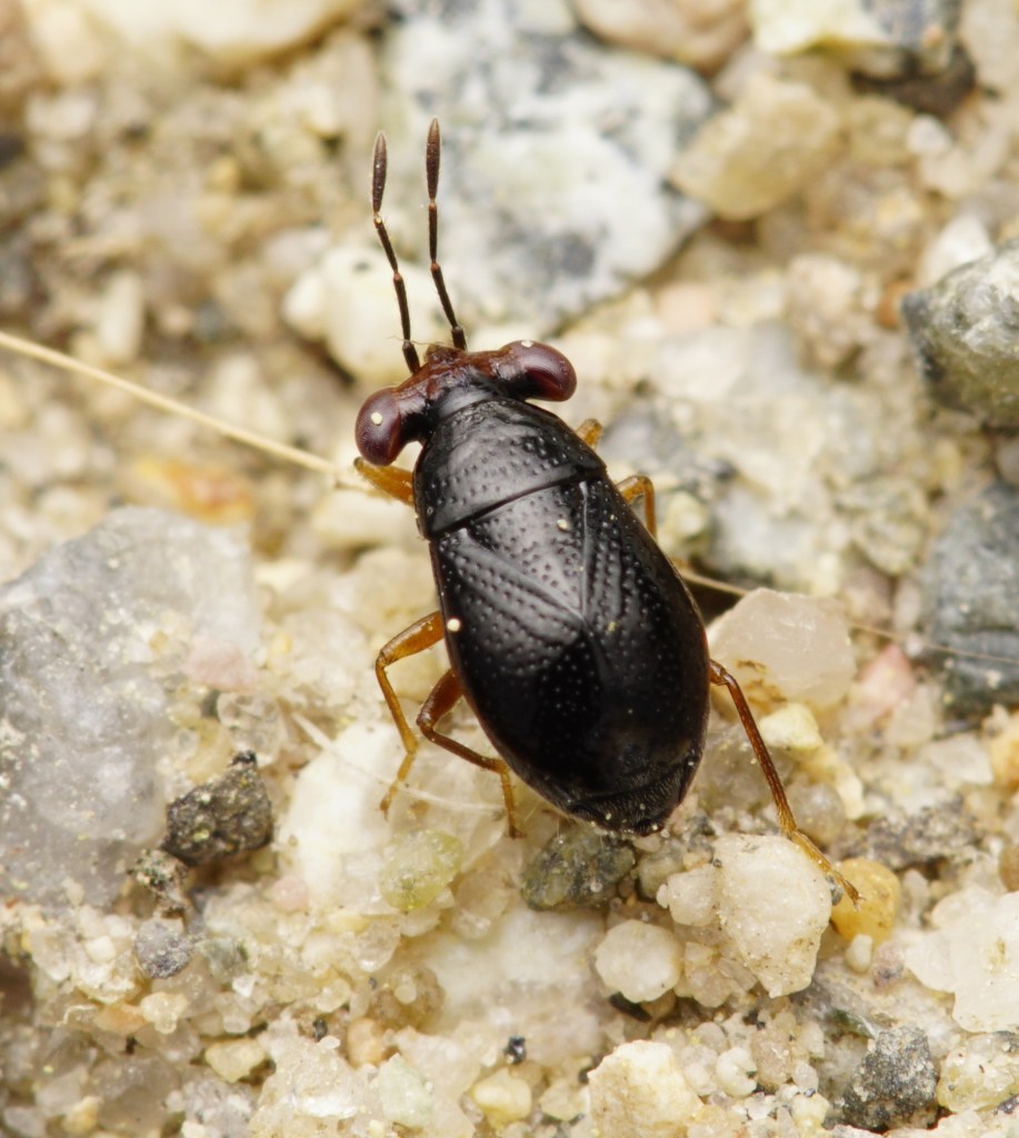 Isthmocoris piceus actually looks like a better fit, in Geocoridae. I first thought it was Salda in Saldidae. Compare with https://bugguide.net/node/view/1217135