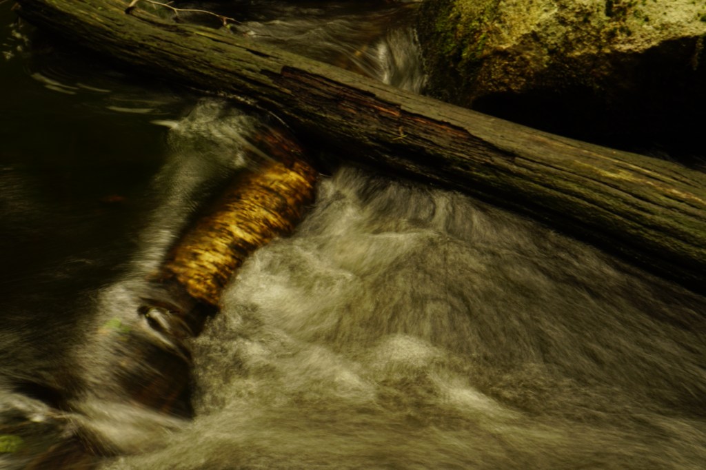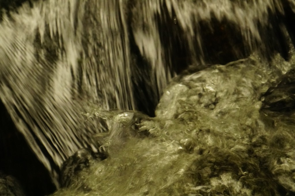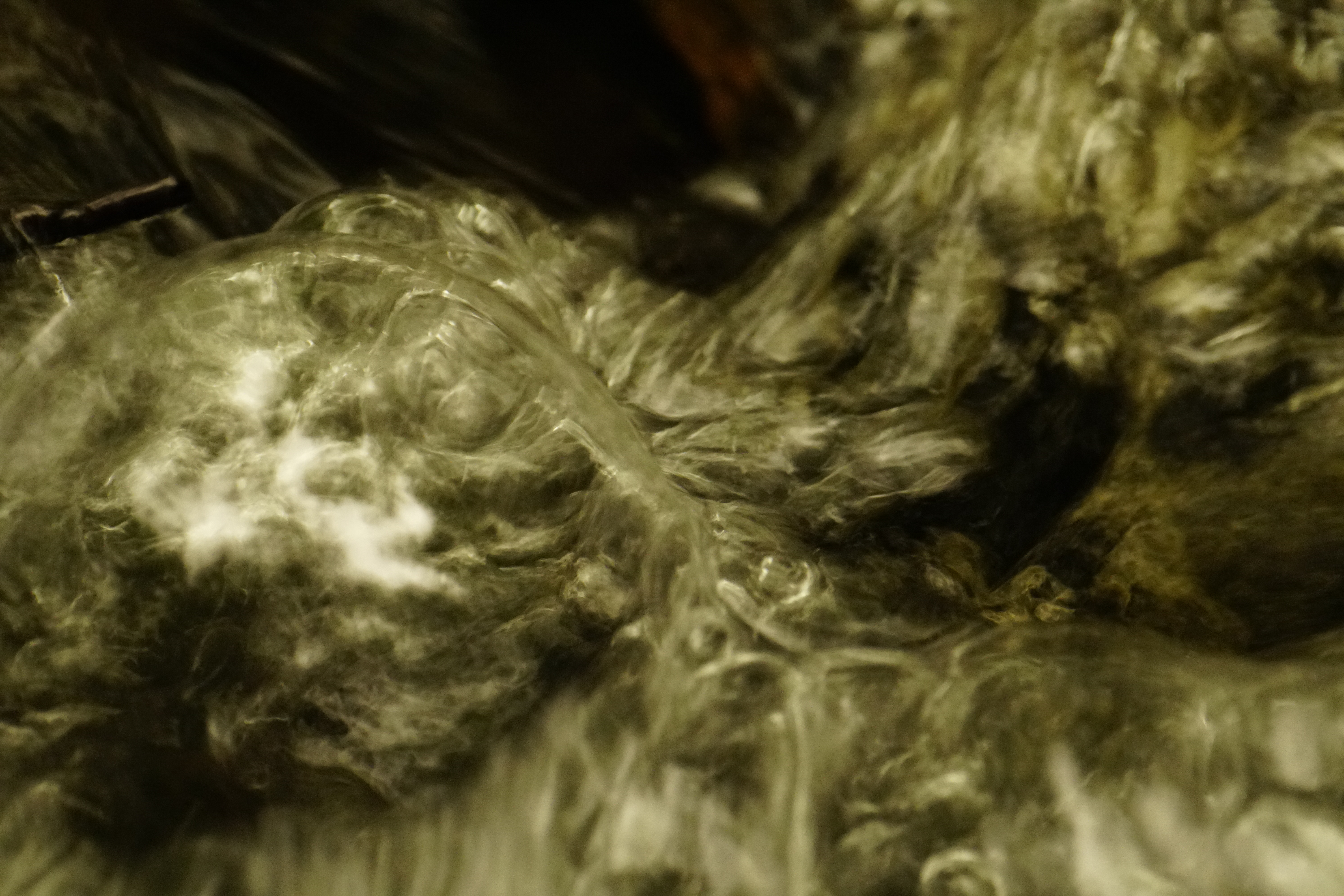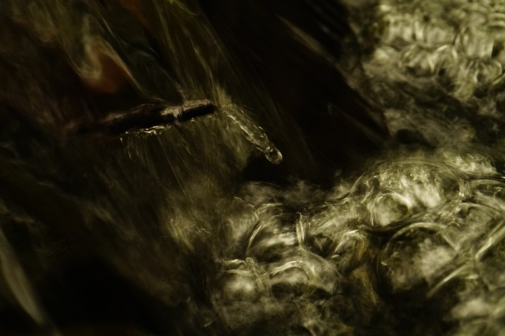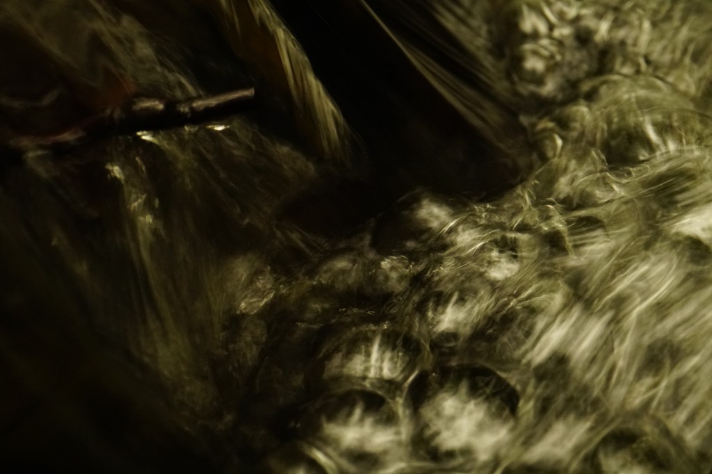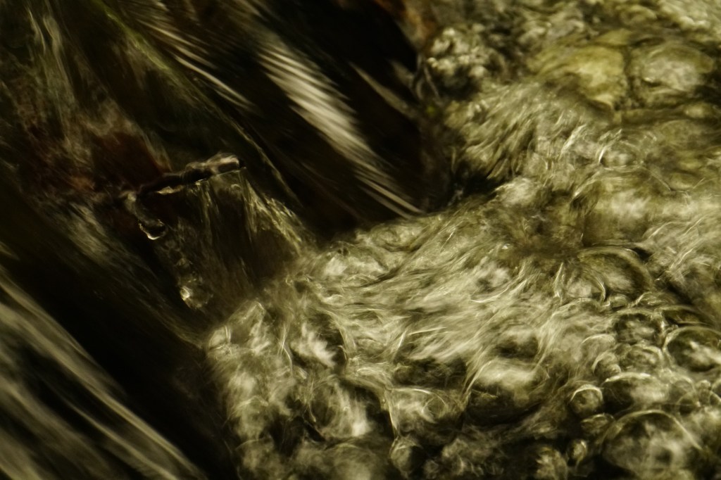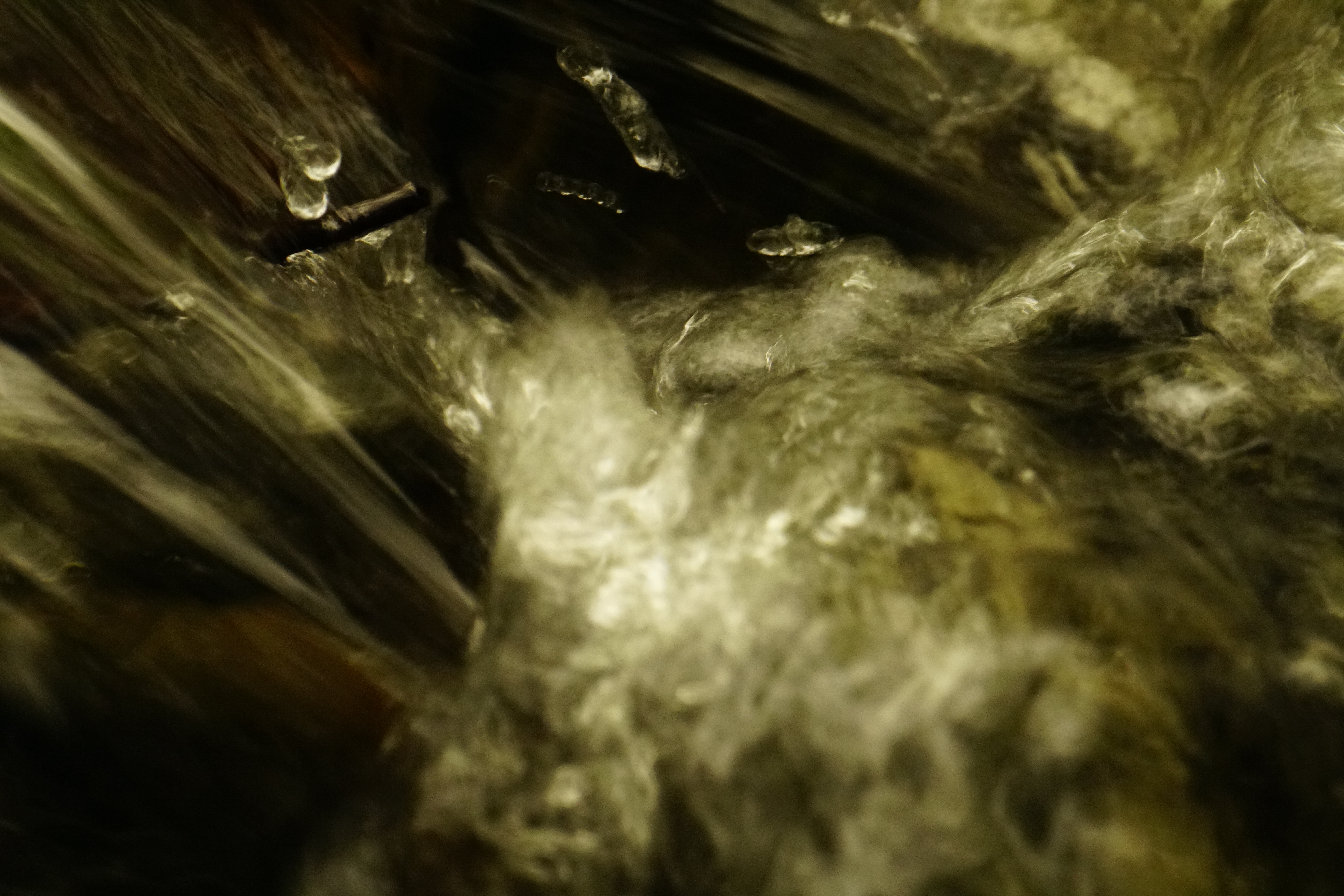 As mentioned, I recently bought a Laowa 24mm macro probe lens. This has a few unique properties: it’s a macro lens that can focus with a few millimeters of the subject; it’s very narrow; it’s waterproof. I decided to try to take closeup photos of the stream, and especially places where the smooth, laminar flow becomes chaotic and turbulent. It may be useful (or not) to realize that these are mostly Straight Out Of Camera photos.