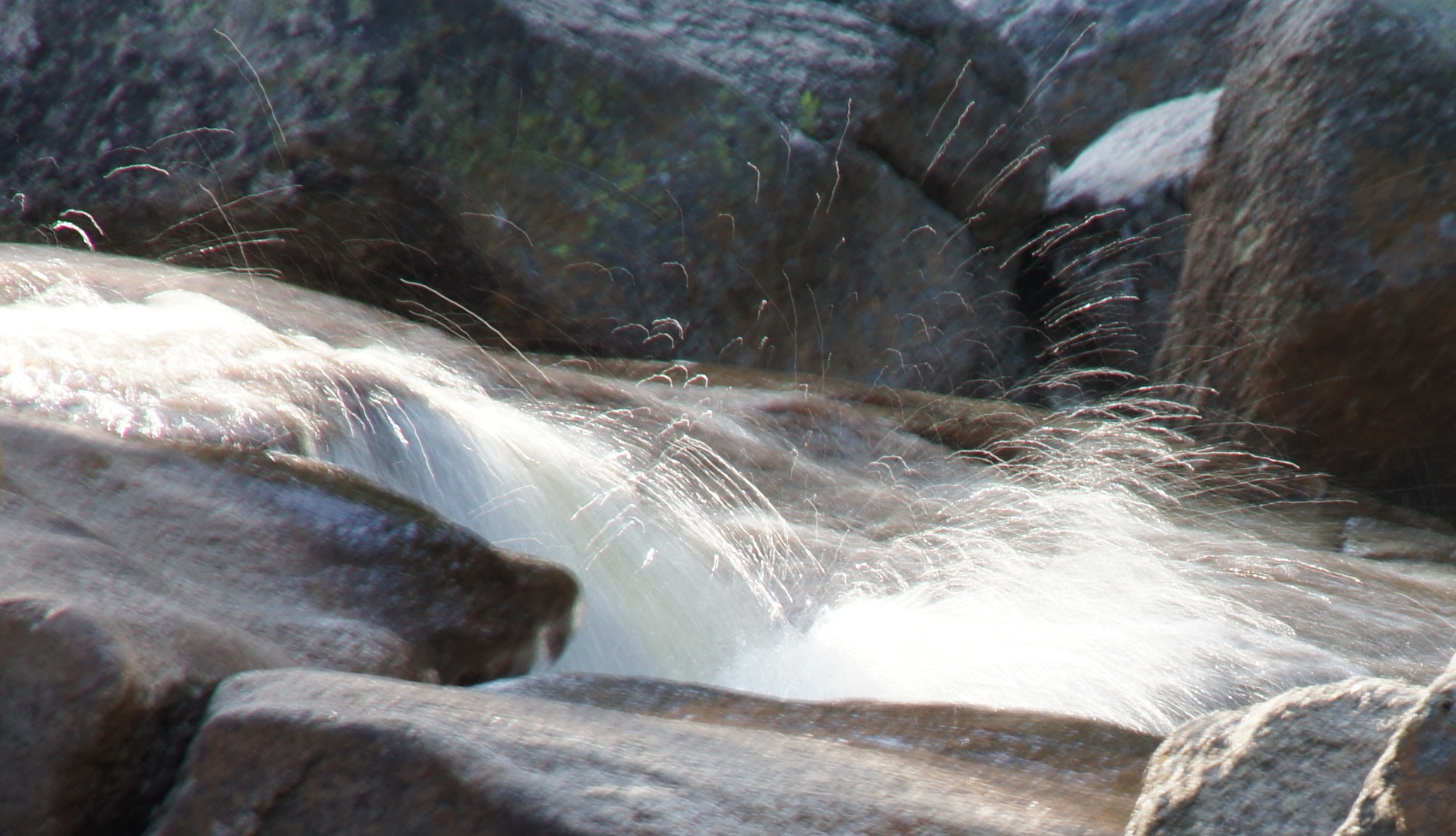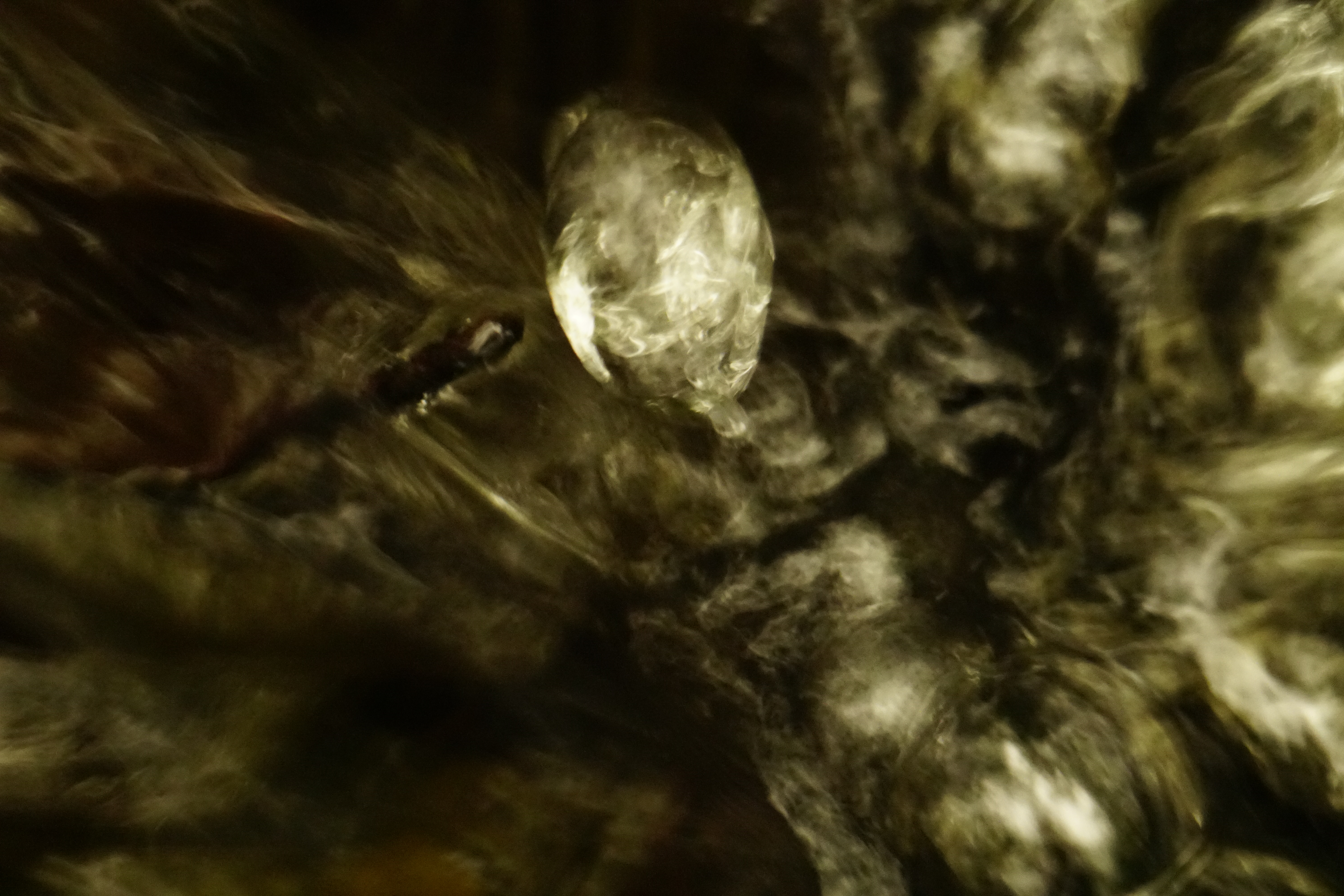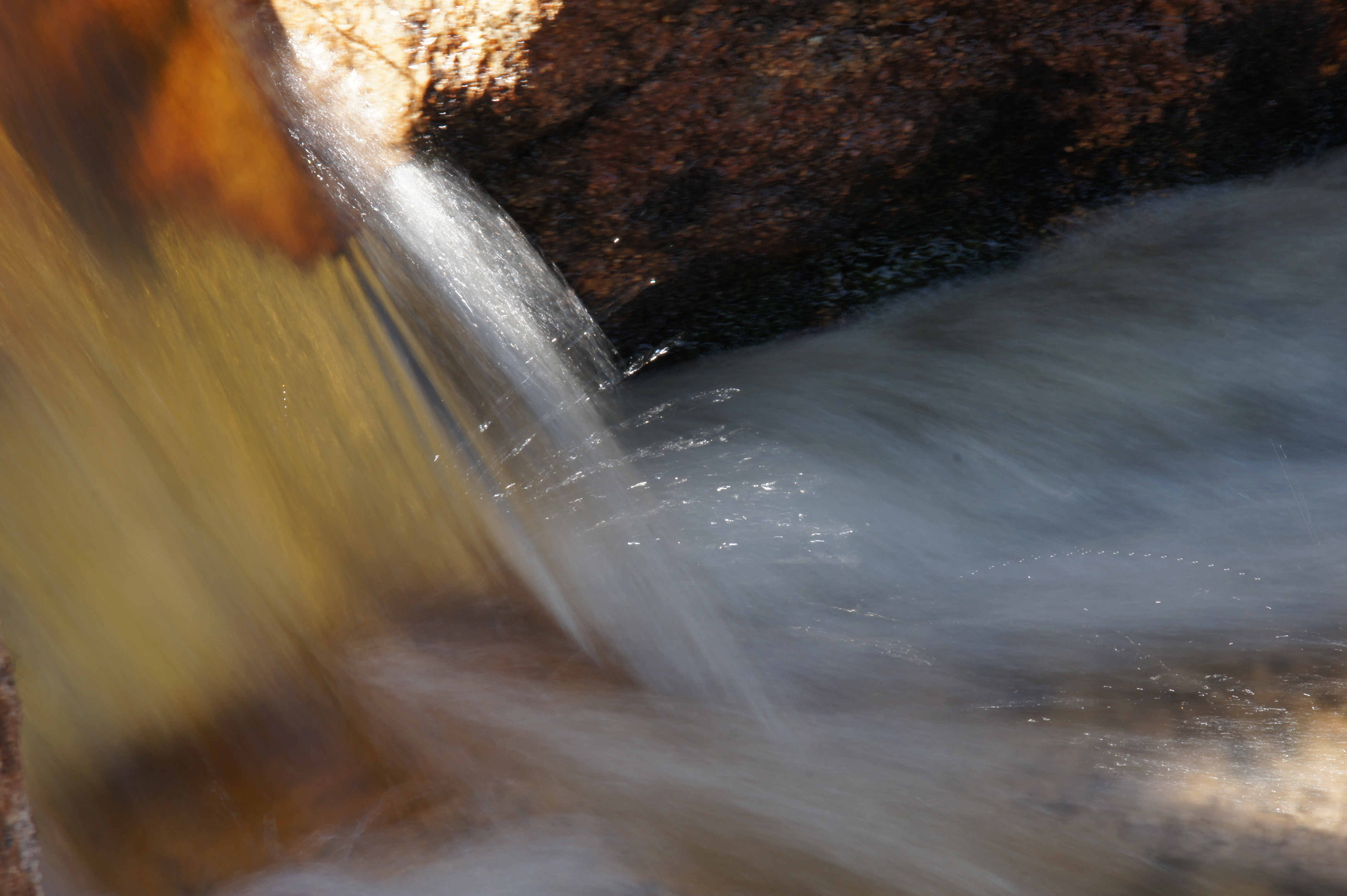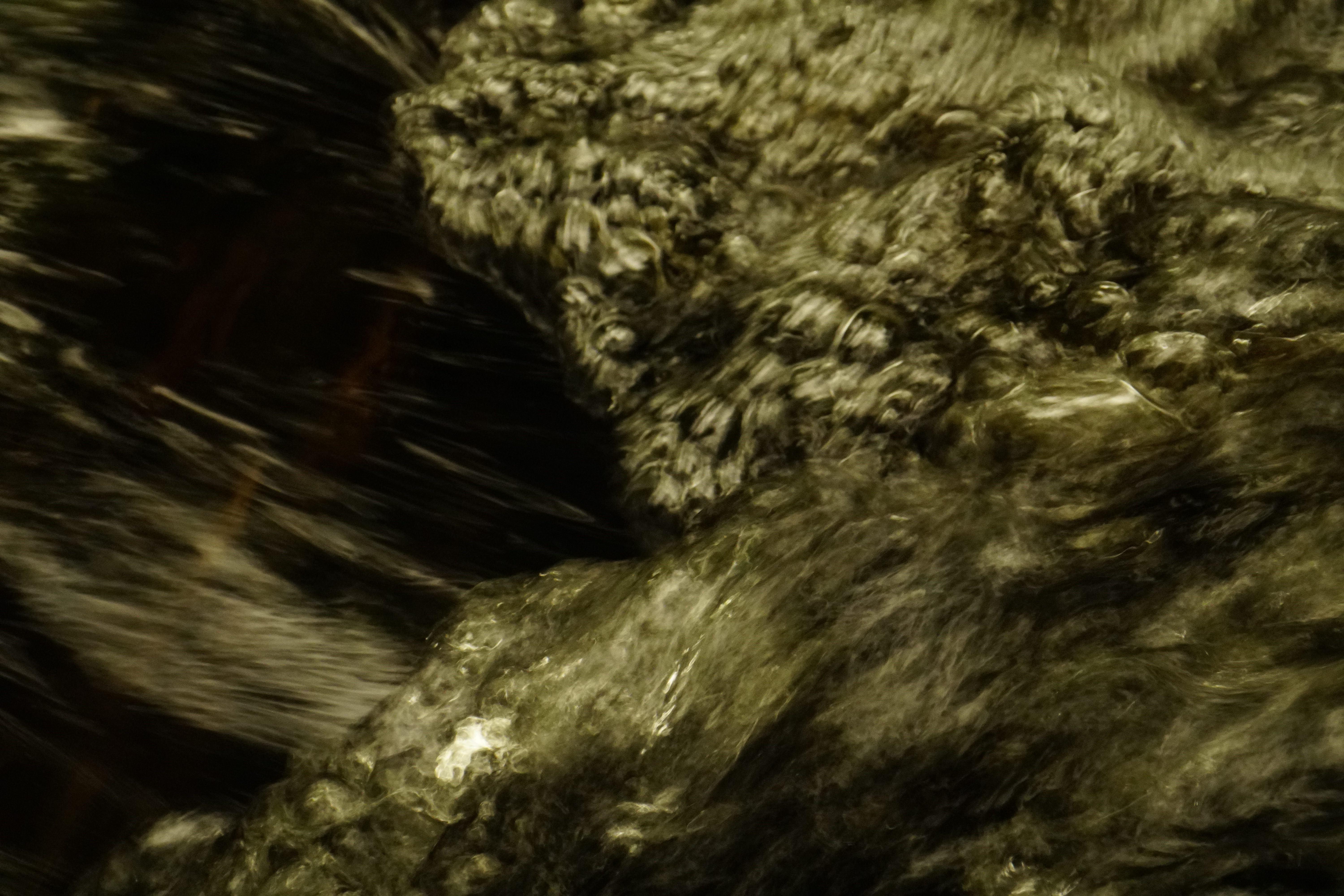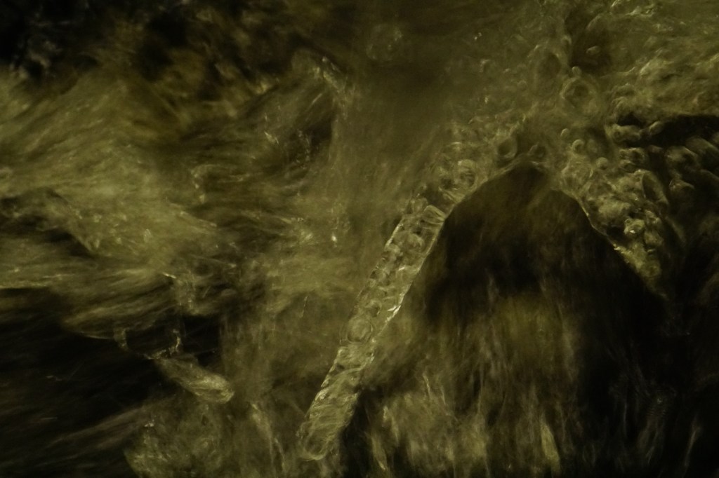 As mentioned, I recently bought a Laowa 24mm macro probe lens. This has a few unique properties: it’s a macro lens that can focus with a few millimeters of the subject; it’s very narrow; it’s waterproof. I decided to try to take closeup photos of the stream, and especially places where the smooth, laminar flow becomes chaotic and turbulent. It may be useful (or not) to realize that these are mostly Straight Out Of Camera photos.