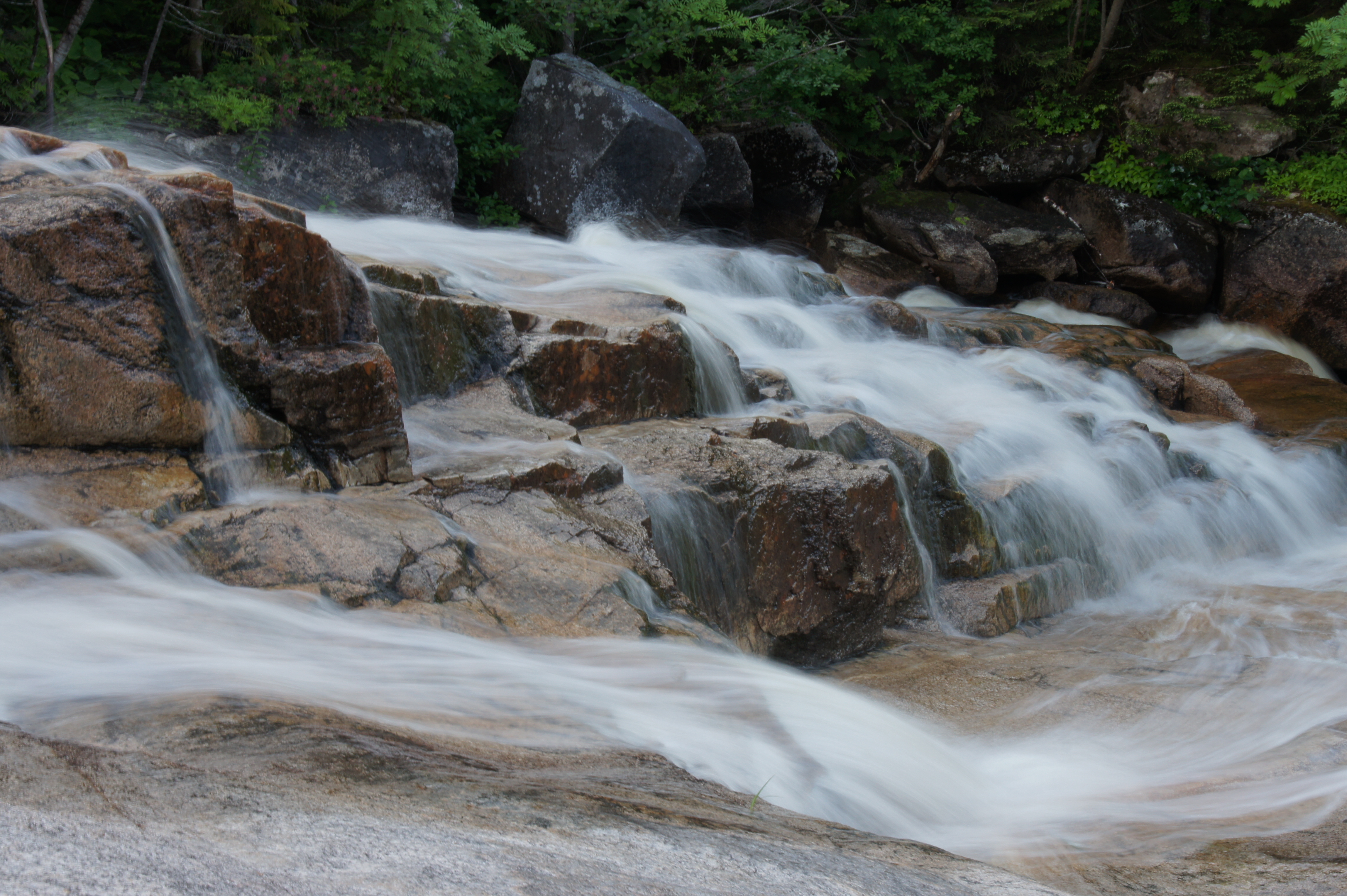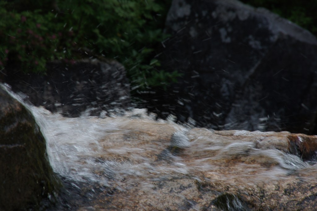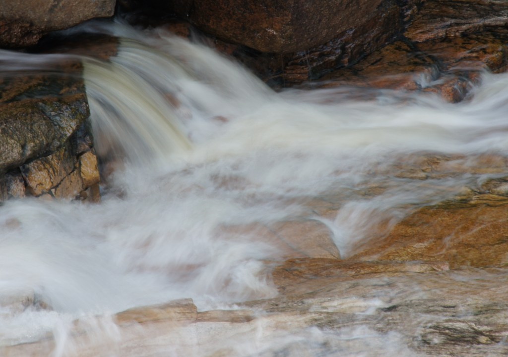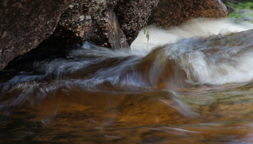 My issue with a lot of time exposure photos of flowing water is that they’re a long enough exposure to completely smooth out the flow, creating an illusion of utter calmness, but hiding the vitality and boisterousness of the flow. The little droplets playing around are what cause this, but they don’t usually come out in a photo — the eye can register smaller details that hide from most cameras. This has to be recorded by the right shutter time: too slow, as mentioned, smooths everything out, while too fast freezes everything. I want a sort of impressionistic feel to the photos, where you can recognize individual elements but also see that they’re in motion. Showing motion isn’t always easy in a still photo!