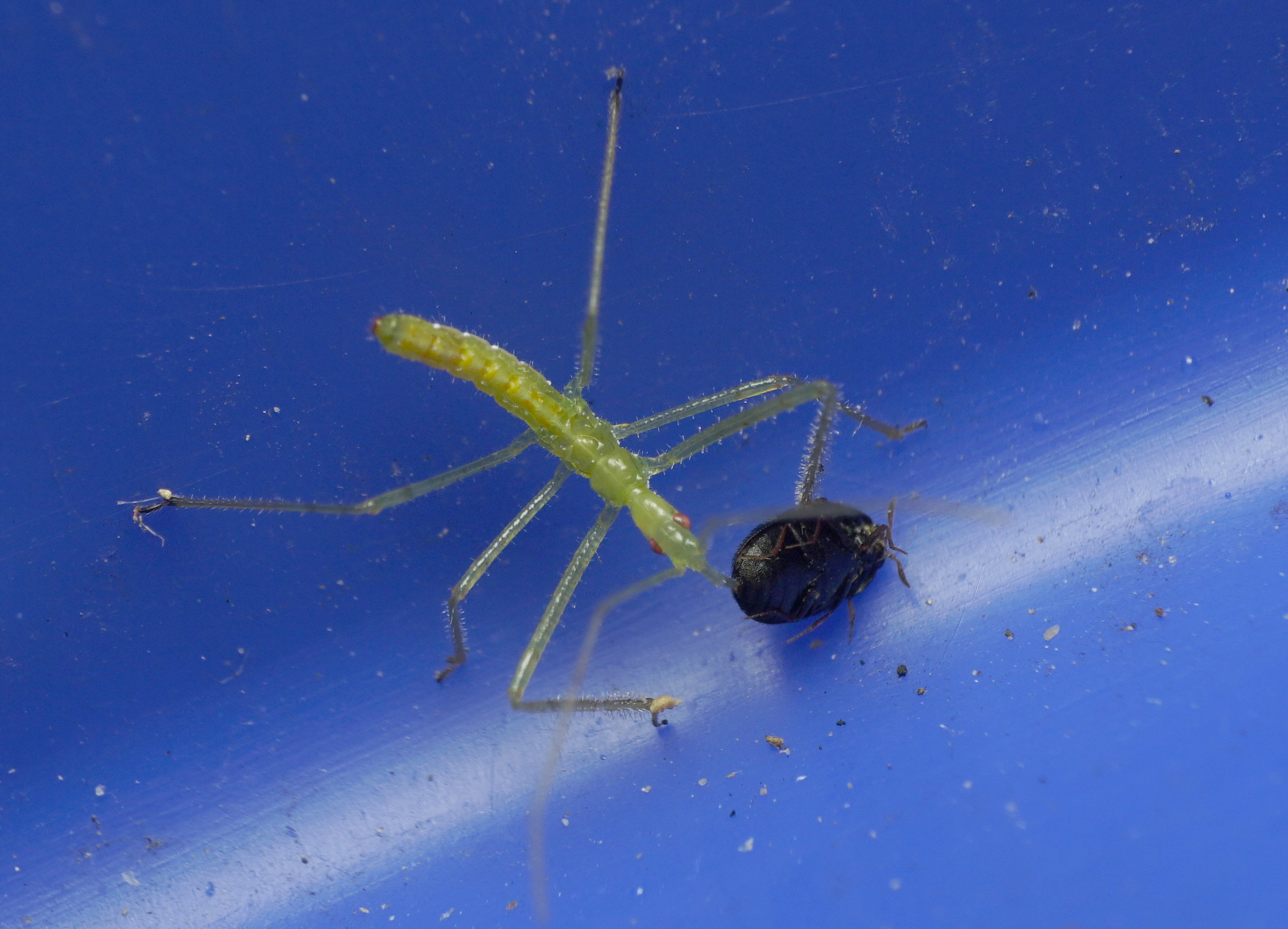 Beautiful Reduviidae nymph, probably Zelus luridus, and prey.