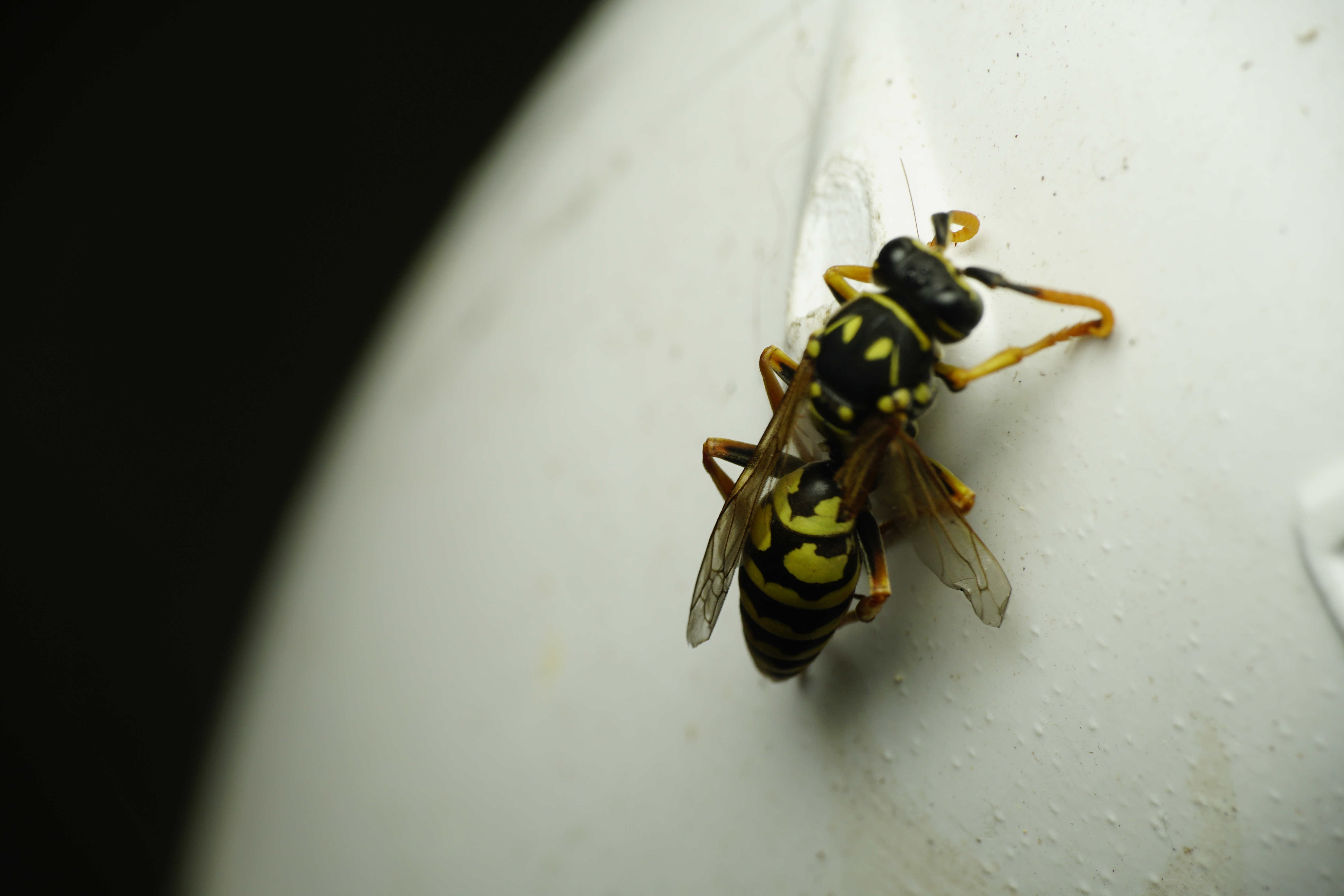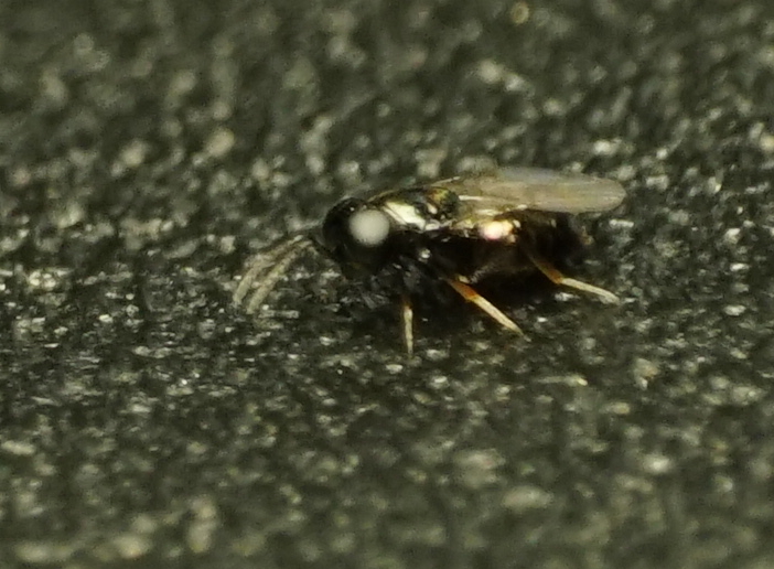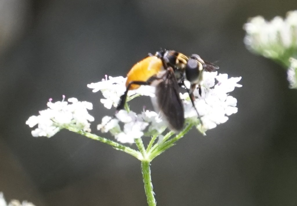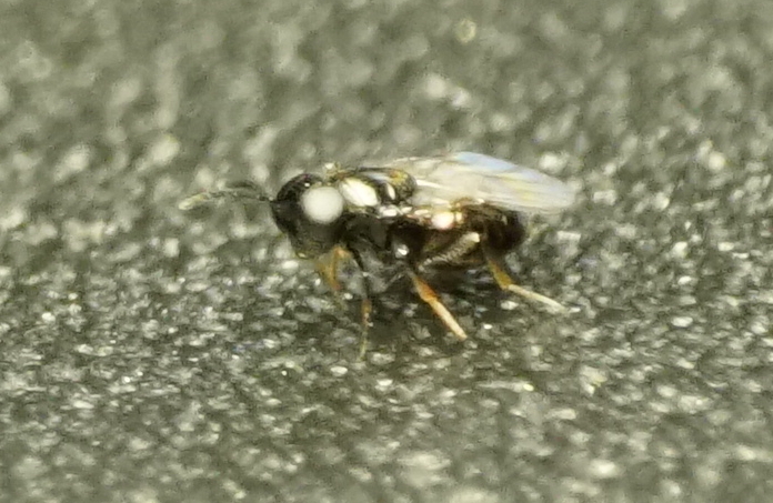Perhaps Apoidea –> Crabronidae, such as Crabronina –> Ectemnius or Crabro? Alternatively, Crabronidae –> Philanthus (beewolf)? I think Ectemnius or Crabro or something similar are the best match.