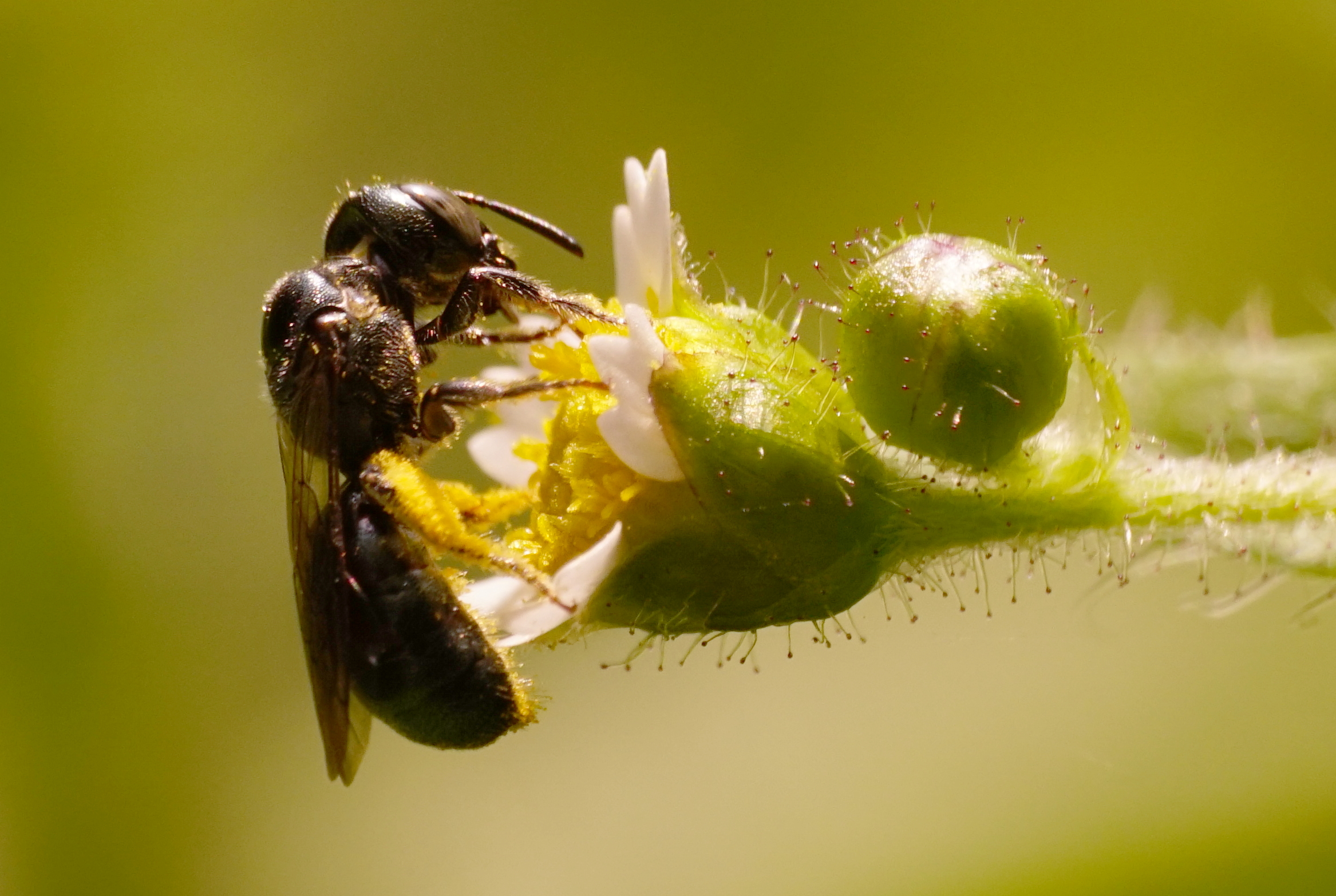 Carpenter bee, Ceratina? I would guess subgenus Zadontomerus.