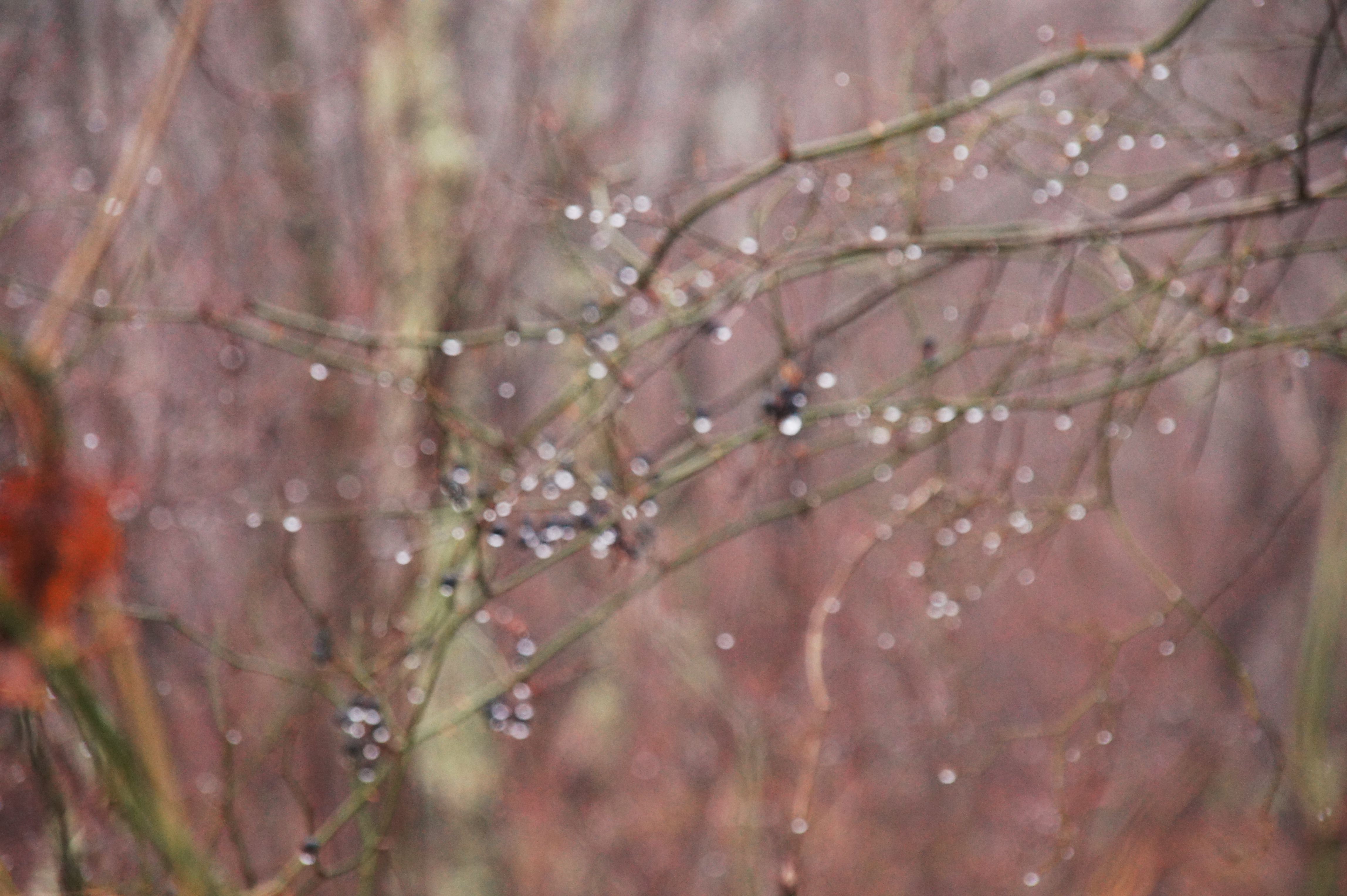Rain droplets are sometimes better when out of focus. The shiny bright light gets lost in the photo if the droplet is in focus (because the dynamic range of the camera is less than that of the eye), but can be seen better by spreading it out.