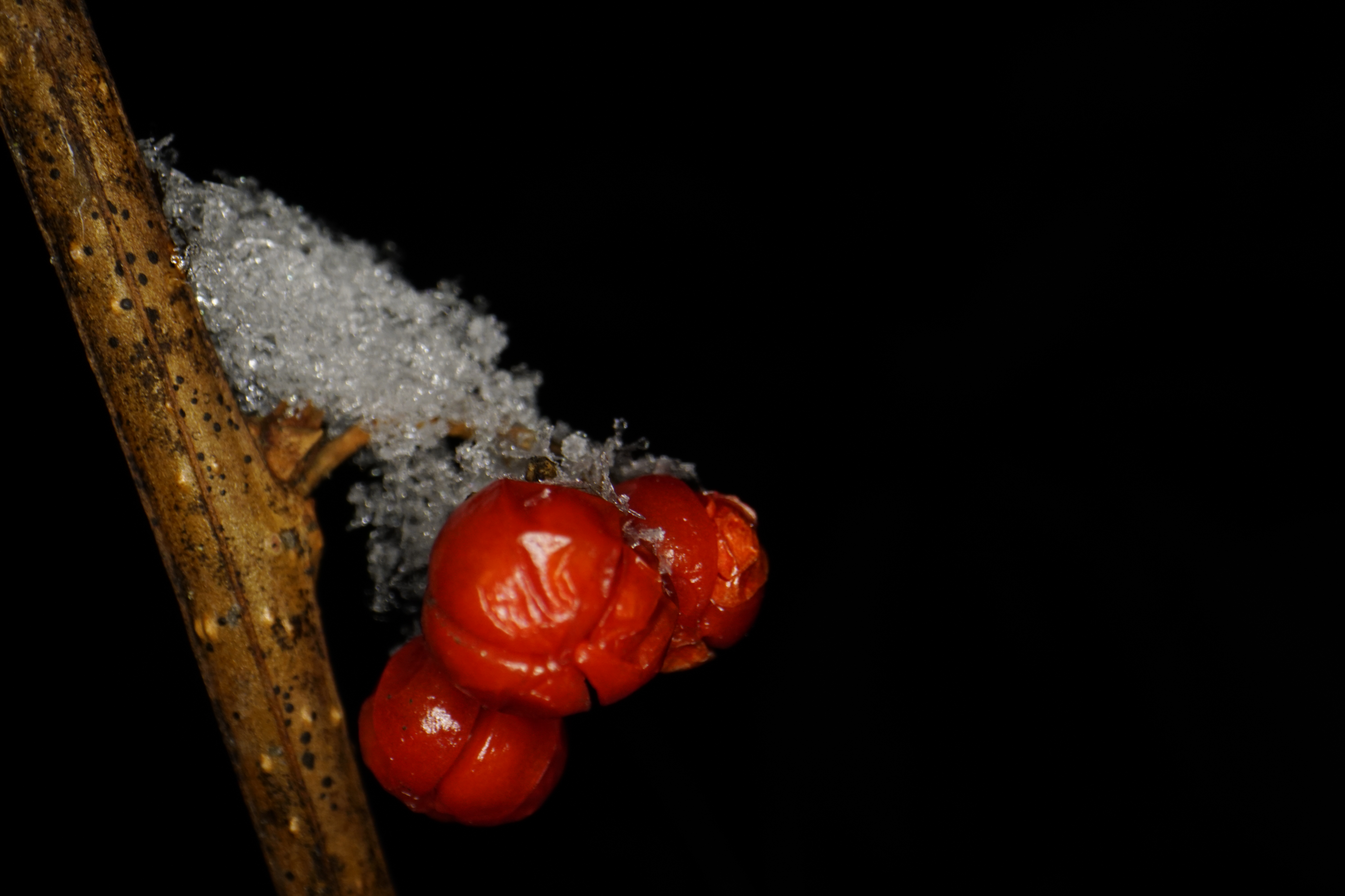 I have no idea what’s going on here. On the lower right, I think is an ostracod. The rest of the object seems to be the carcass of an insect, perhaps? About 2mm long.