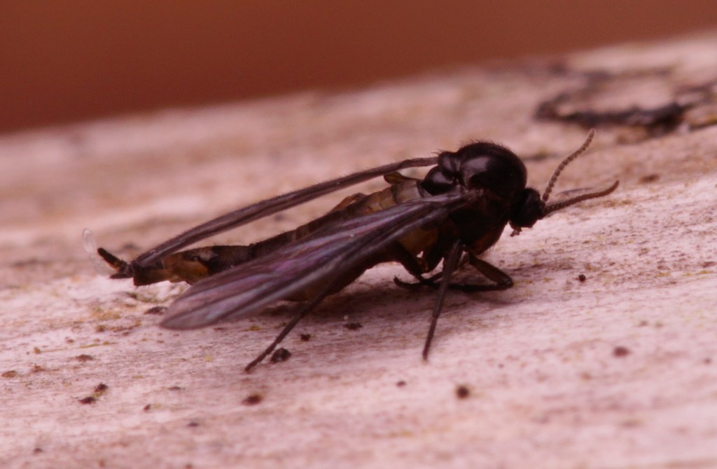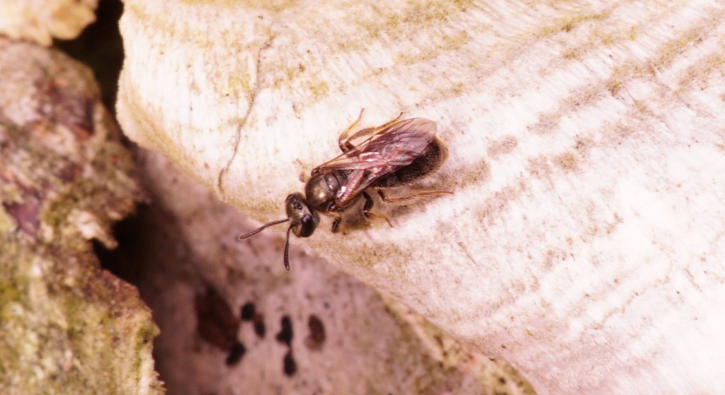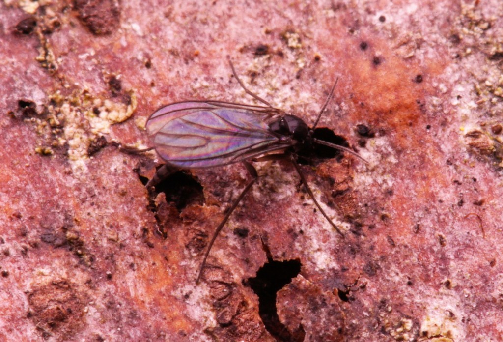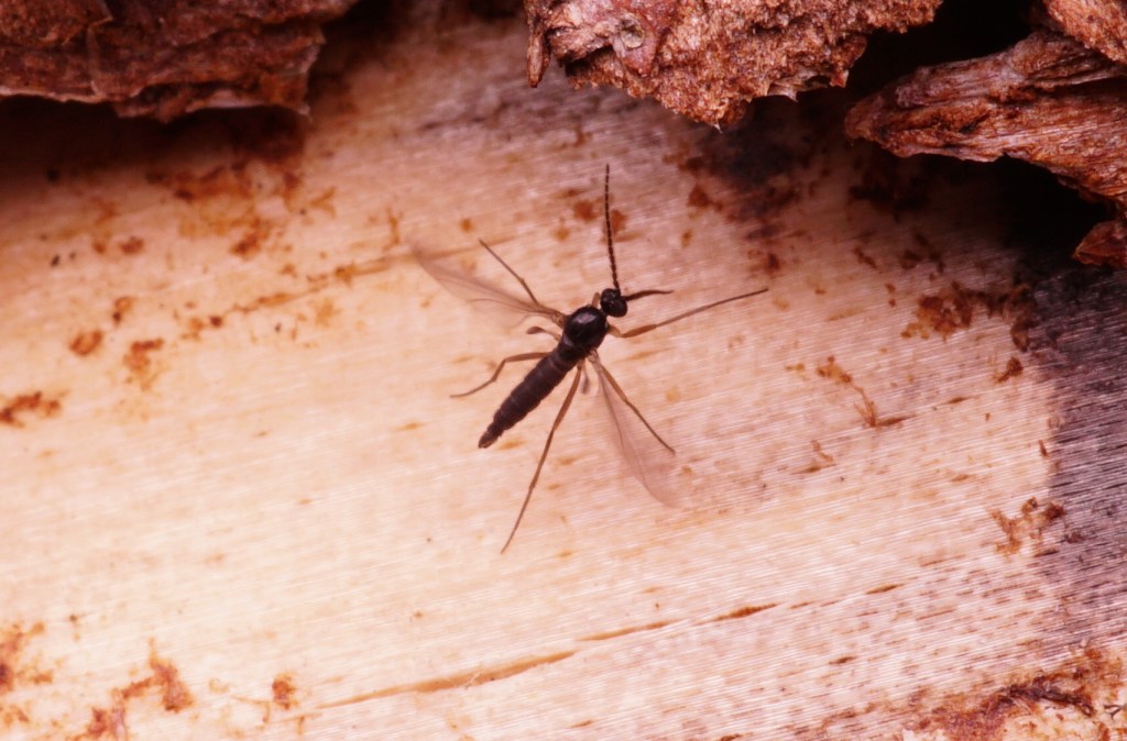 Just like the rove beetles, the fungus gnats seemed interested in the beetle larvae holes in the dead wood.