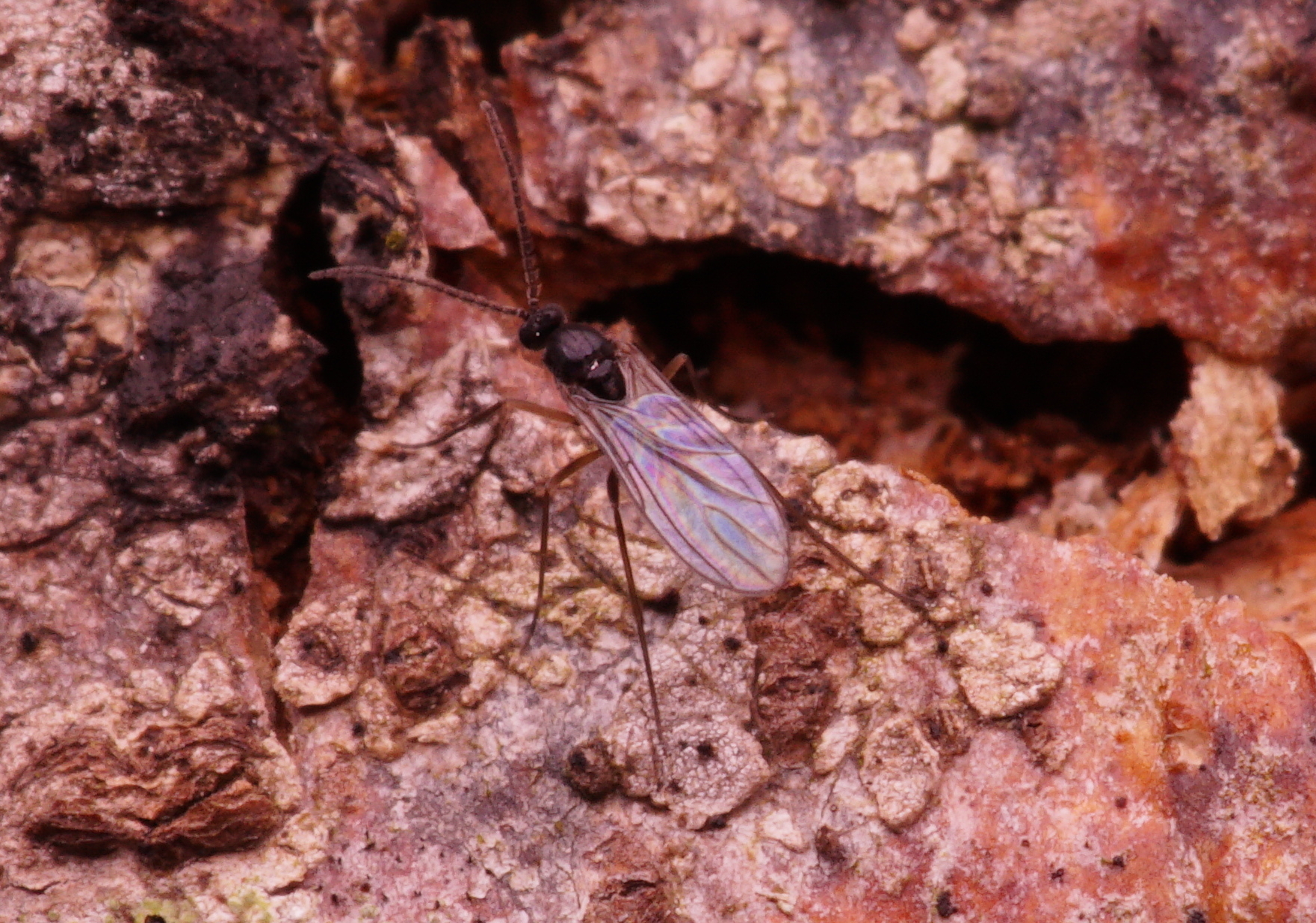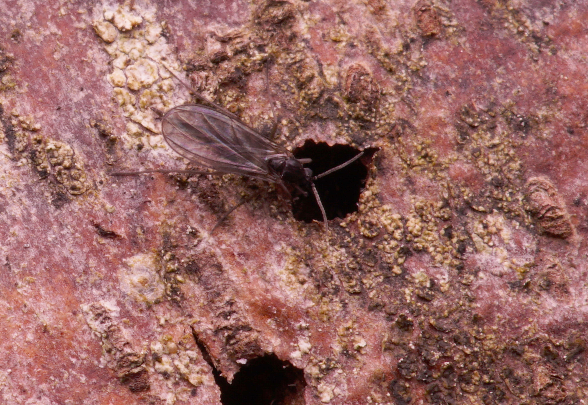 Just like the rove beetles, the fungus gnats seemed interested in the beetle larvae holes in the dead wood.