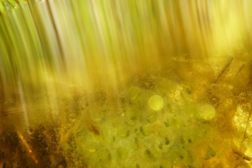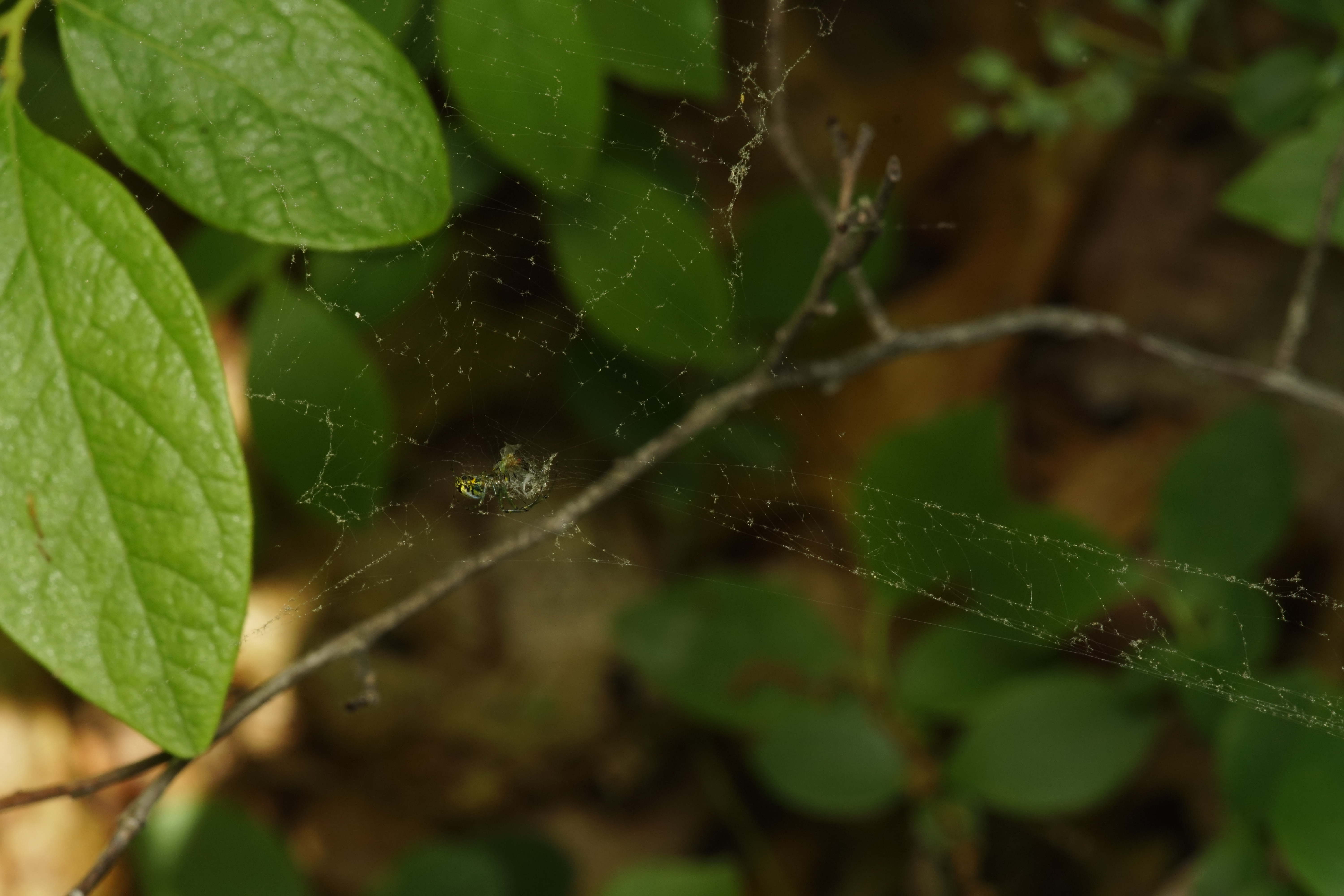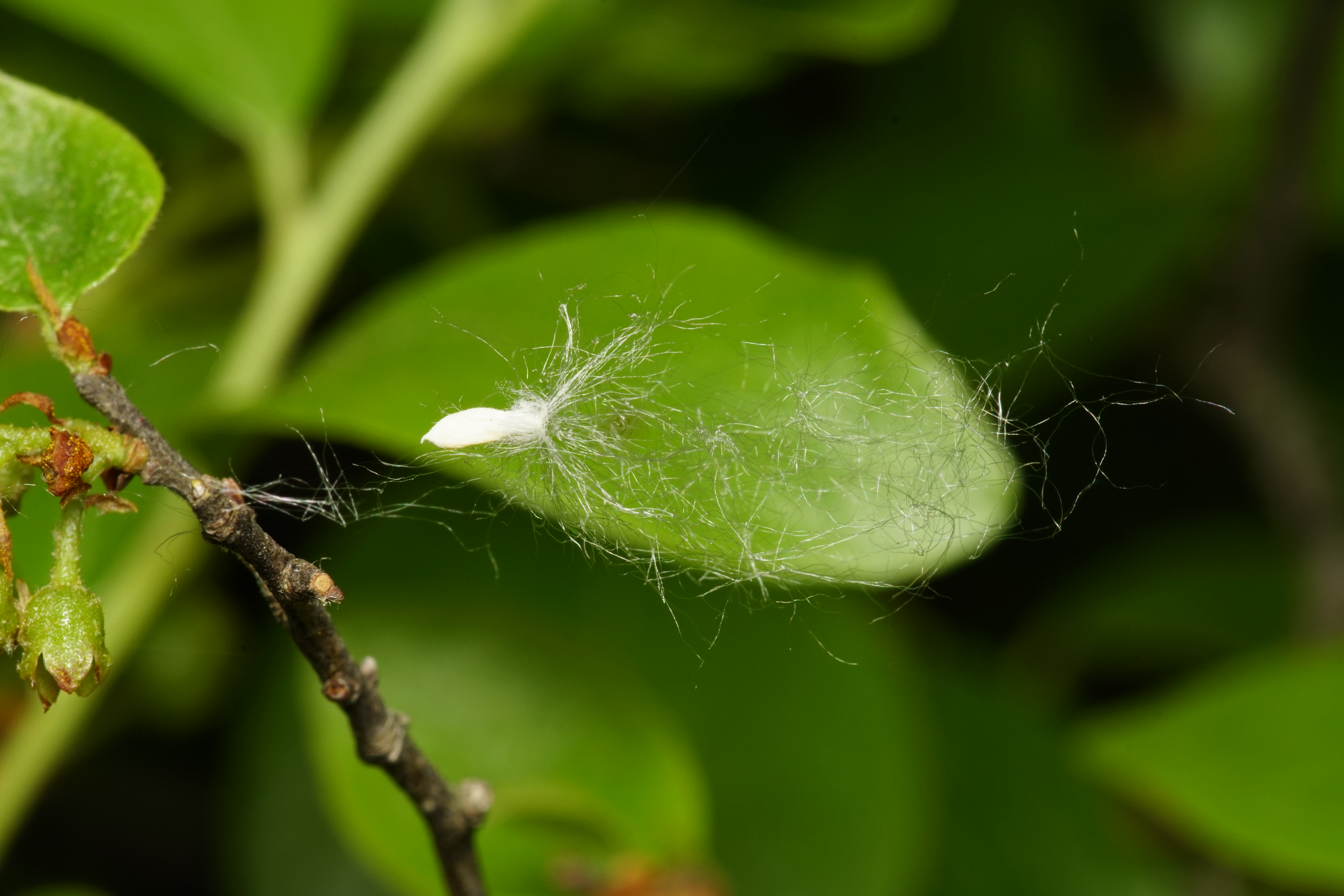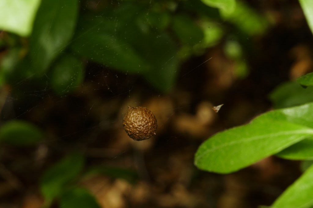 I think this is a Neriene radiata egg sac (perhaps some other Linyphiid). And here’s the spider whose web it was in.