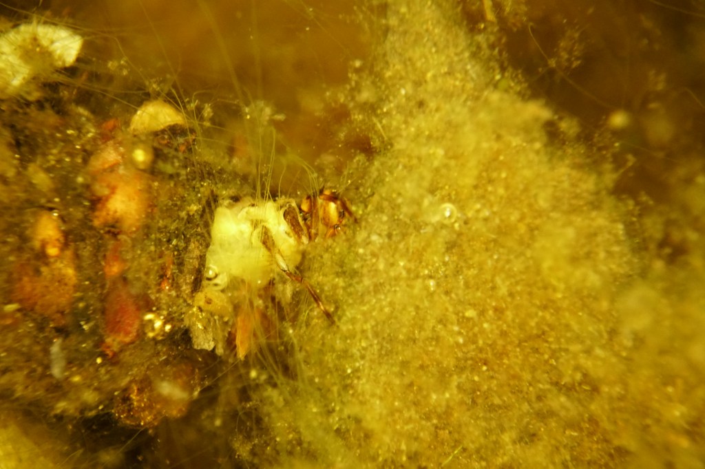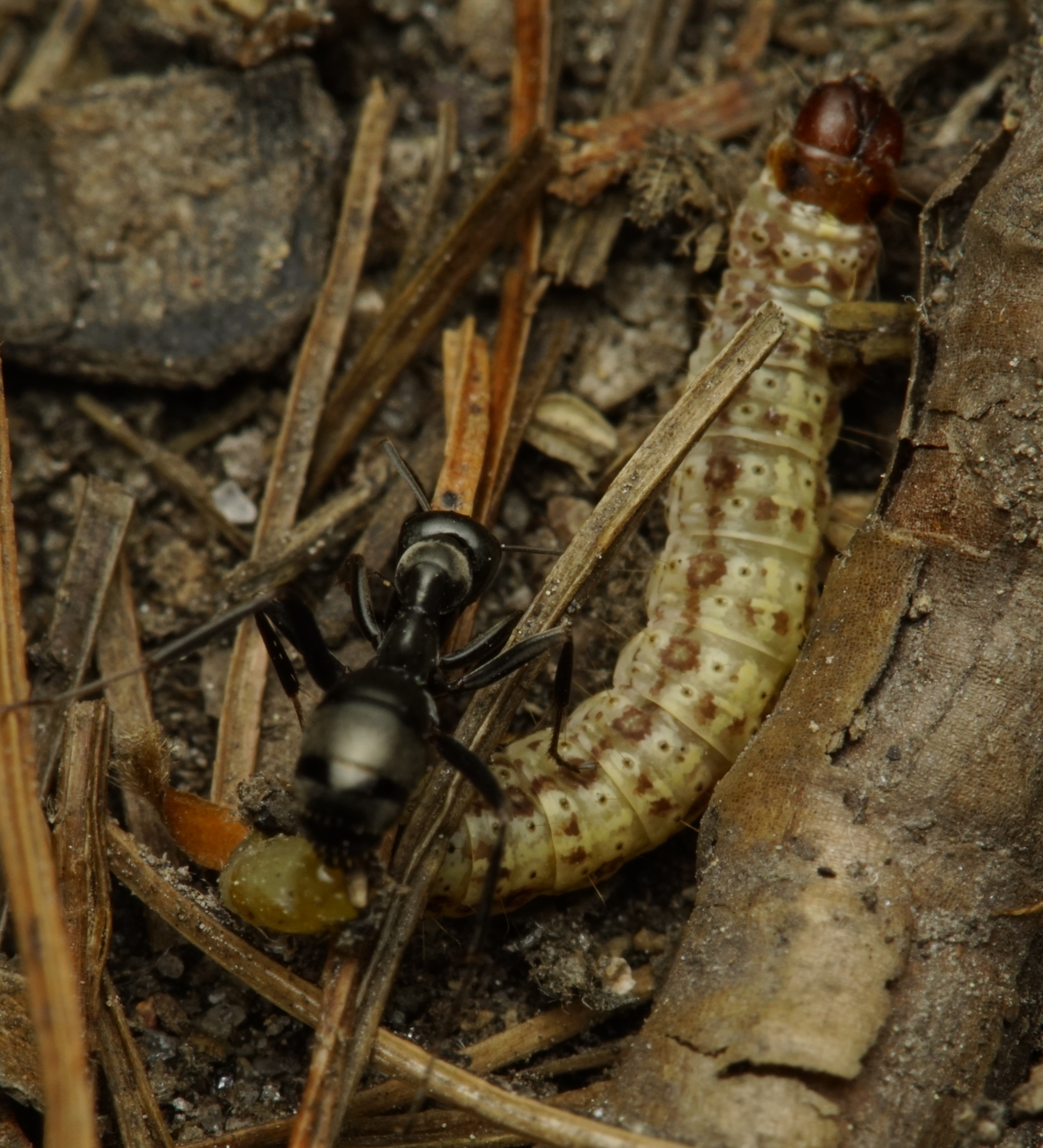 There were a bunch of these caterpillars, and there were a bunch of ants attacking them. The caterpillars were writhing furiously (and perhaps successfully).