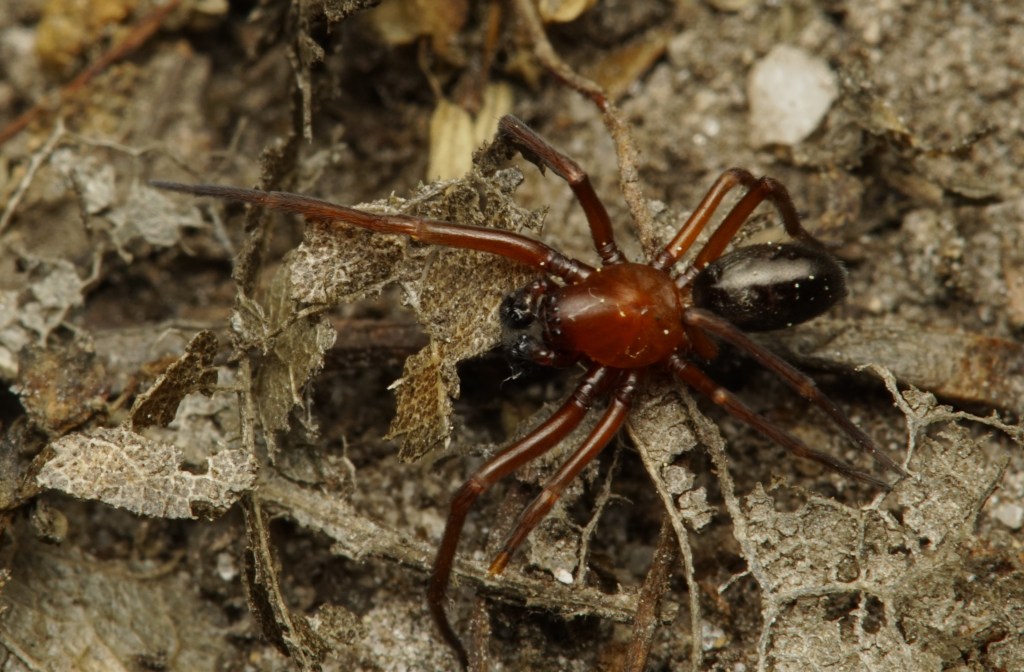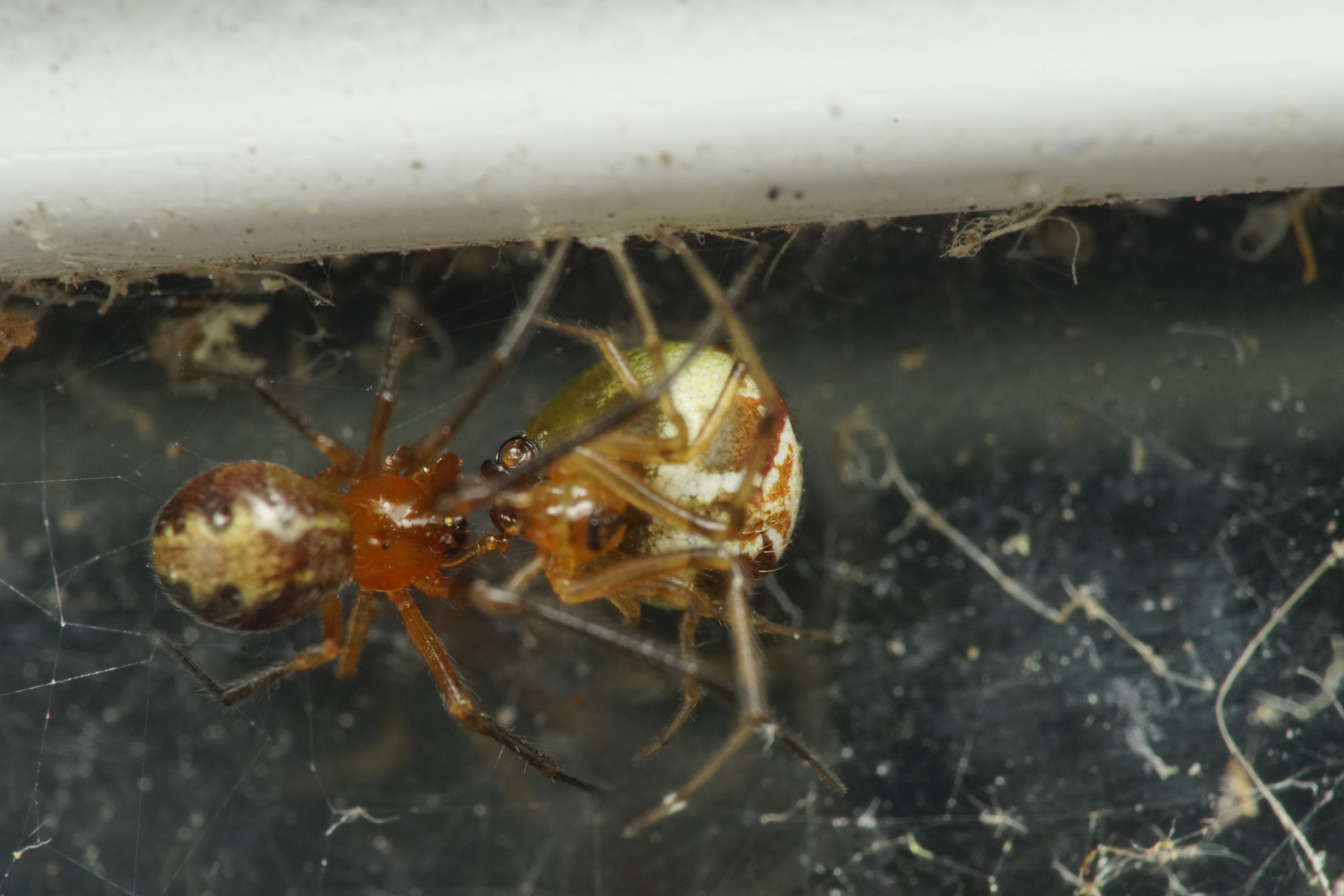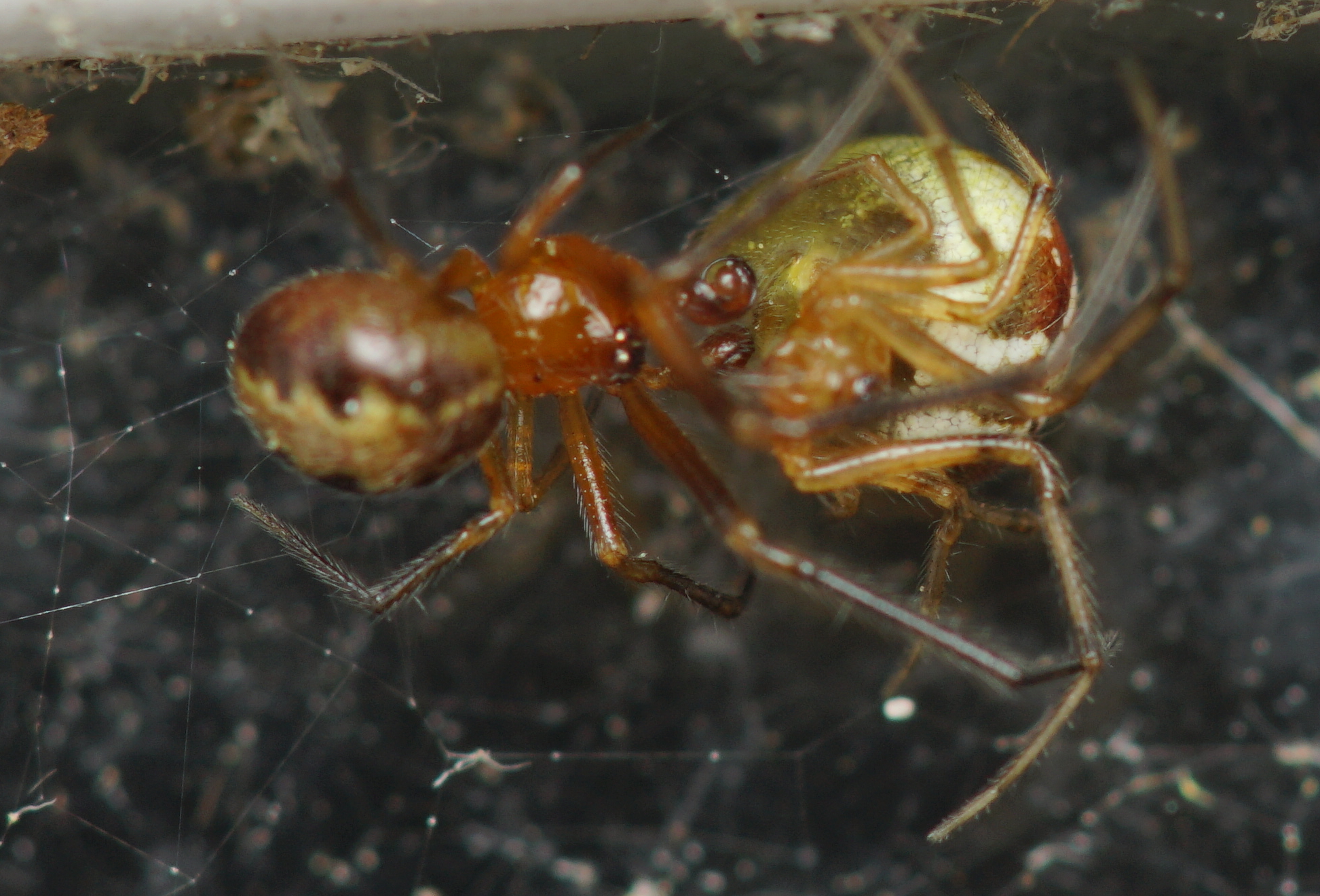 THIS WAS EXCITING! Titanoeca in Titanoecidae, first sighting of this family in Massachusetts according to BugGuide. And my first sighting of this family, too.