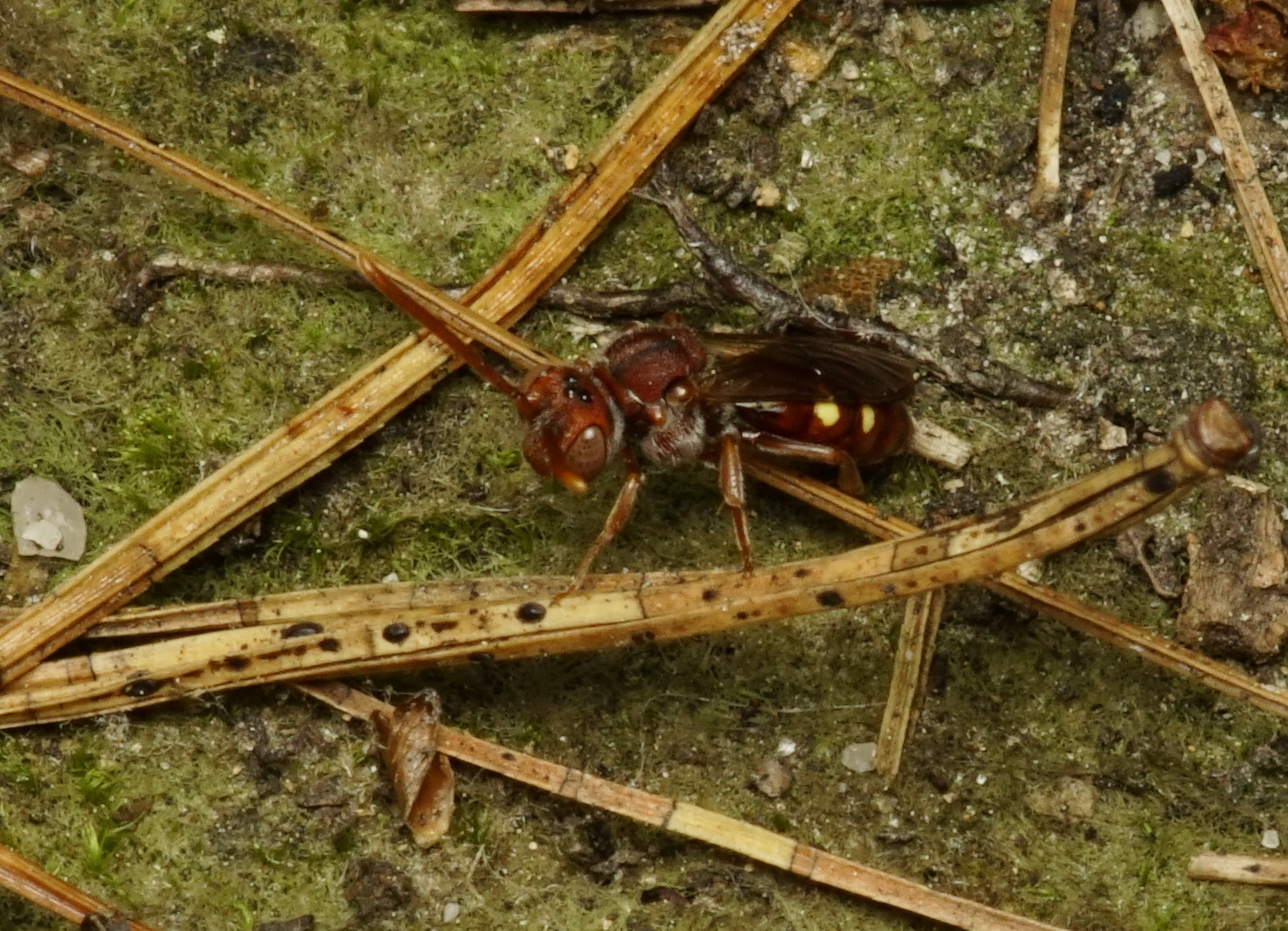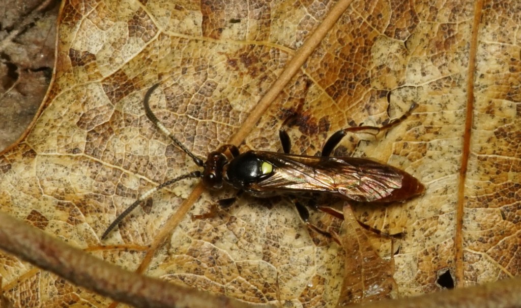 Like the Vespidae, the Pompilidae have the pronotum extending back to the tegulae, the pronotum thus appearing triangular when viewed from the side and horseshoe-shaped when viewed from above.