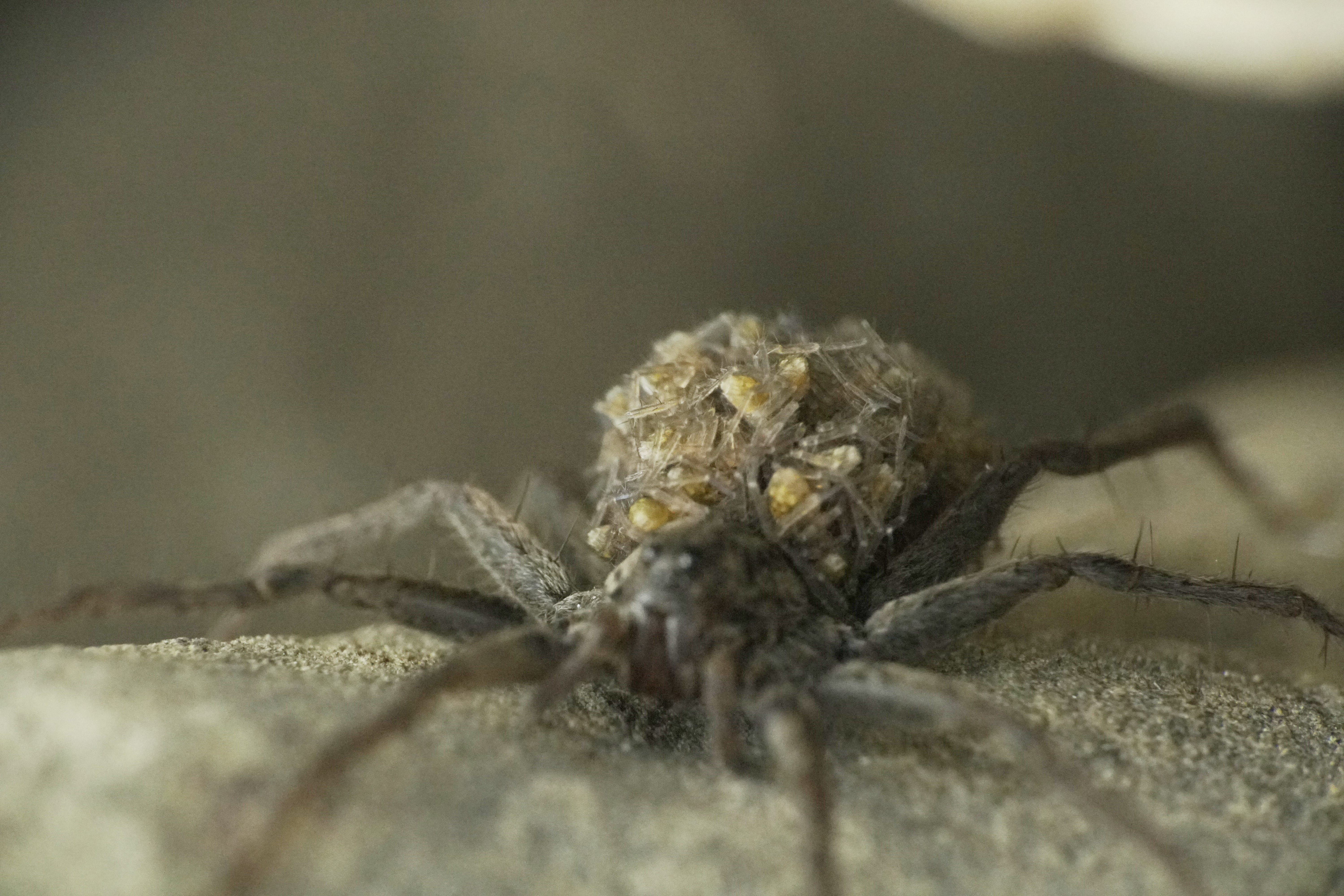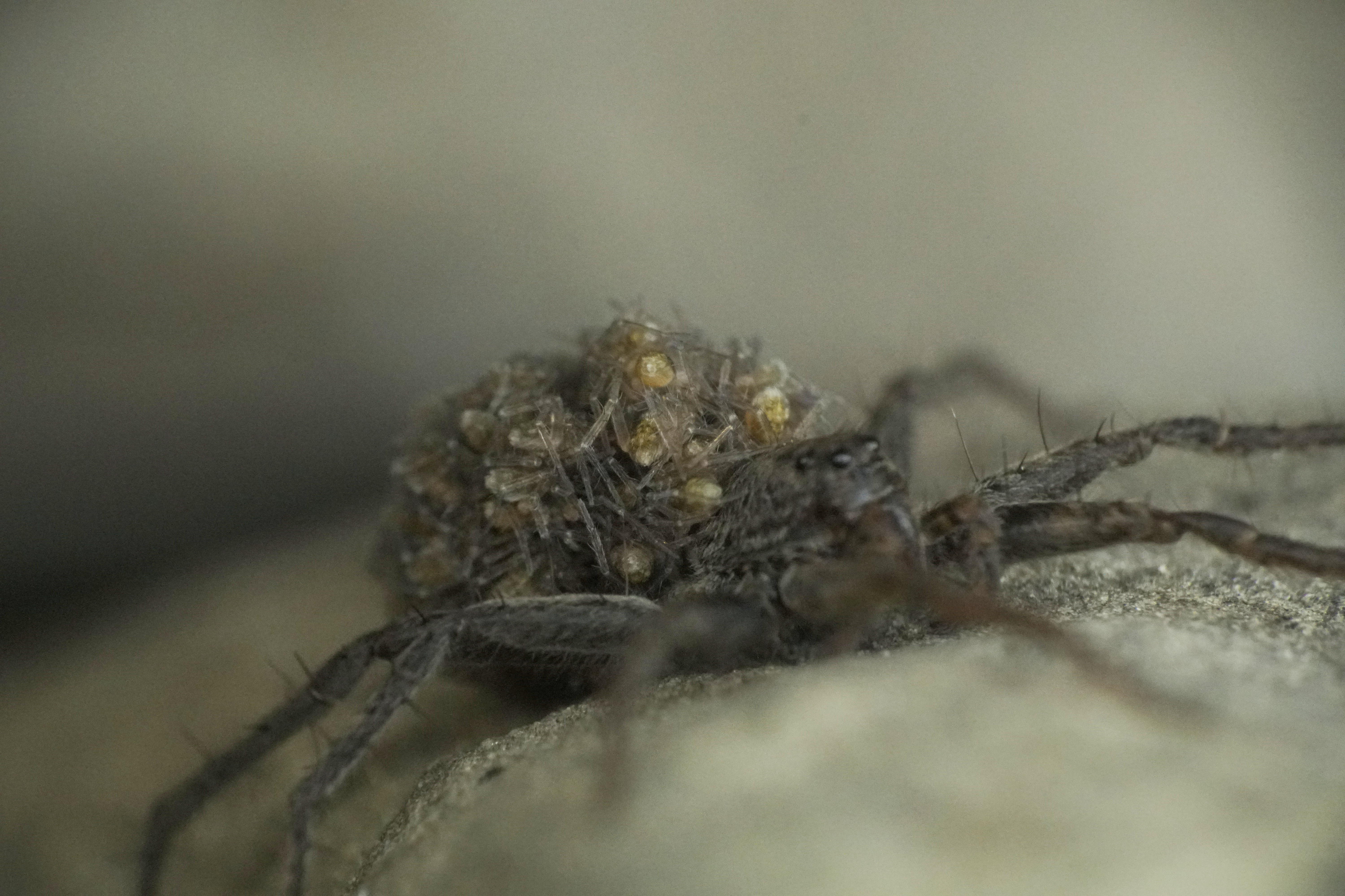 Another star of the show! I’ve been trying for so, so, so long to get photographs of a mama Lycosid (wolf spider) with all of her many spiderlings on her back. It was exciting finally getting them!