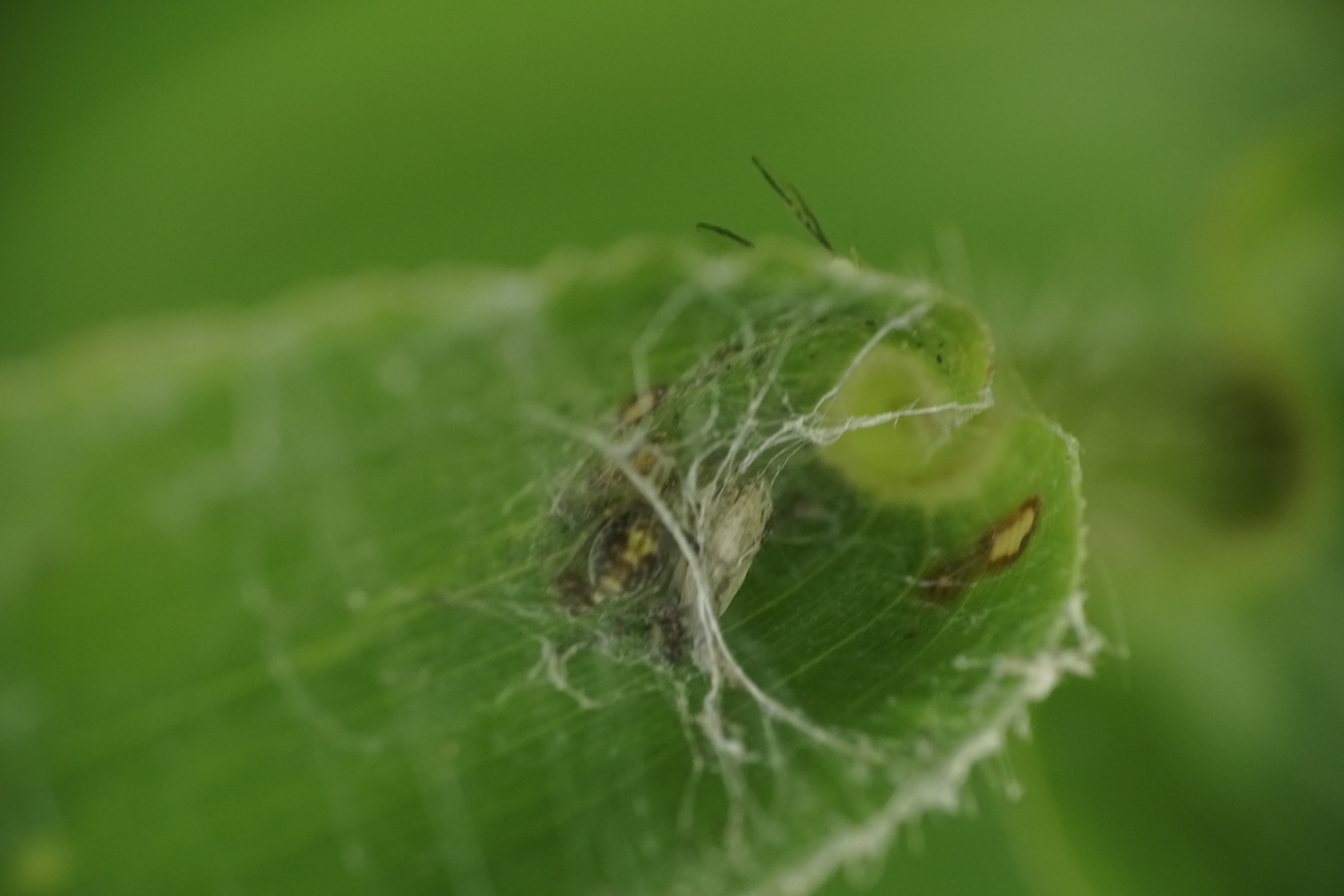 This spider spent quite a bit of time hauling its prey up. I’m guessing Parasteatoda. It’s weird seeing them actually in nature, outside a house or garage.