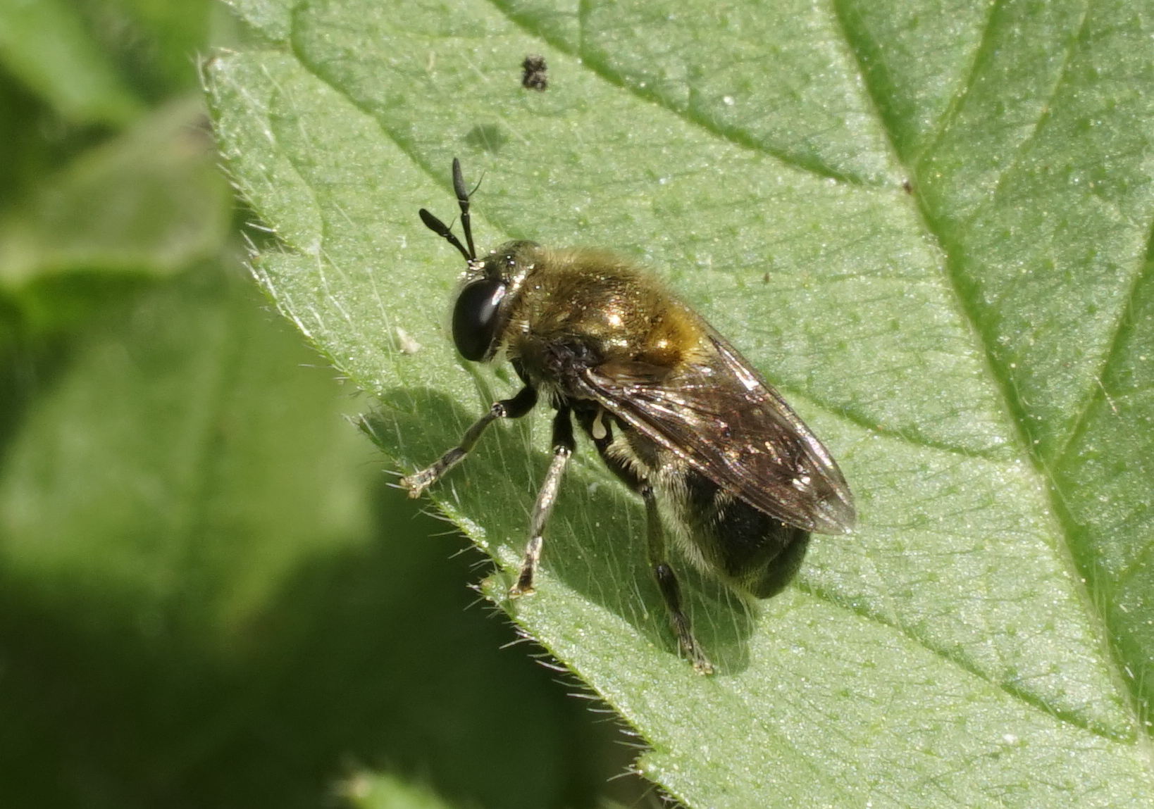 Microdon is an interesting species for lifestyle. They are in the order Syrphidae, but are very different from others. Their larvae live in ant nests. Info from Wikipedia, https://en.wikipedia.org/wiki/Microdon: