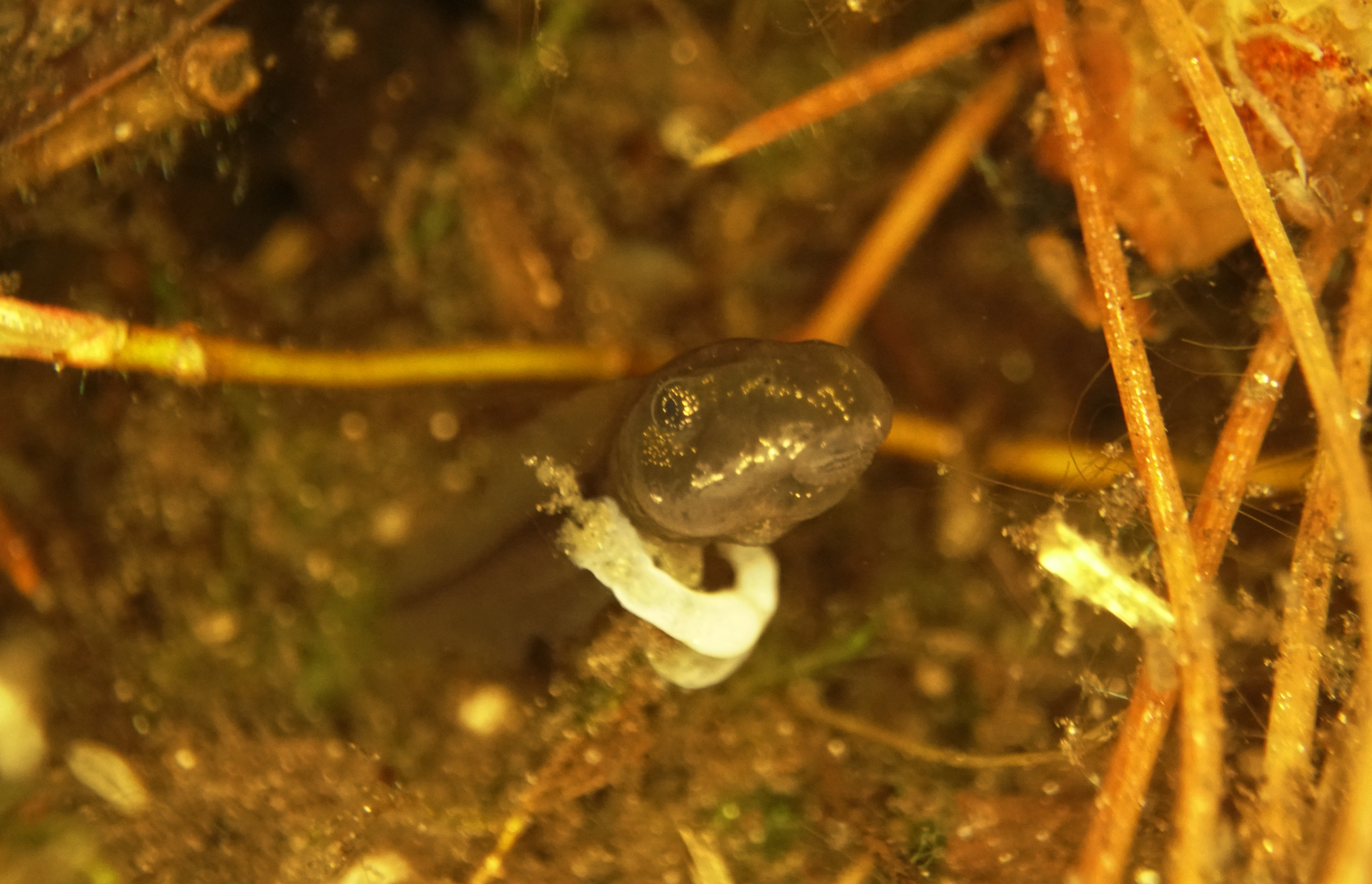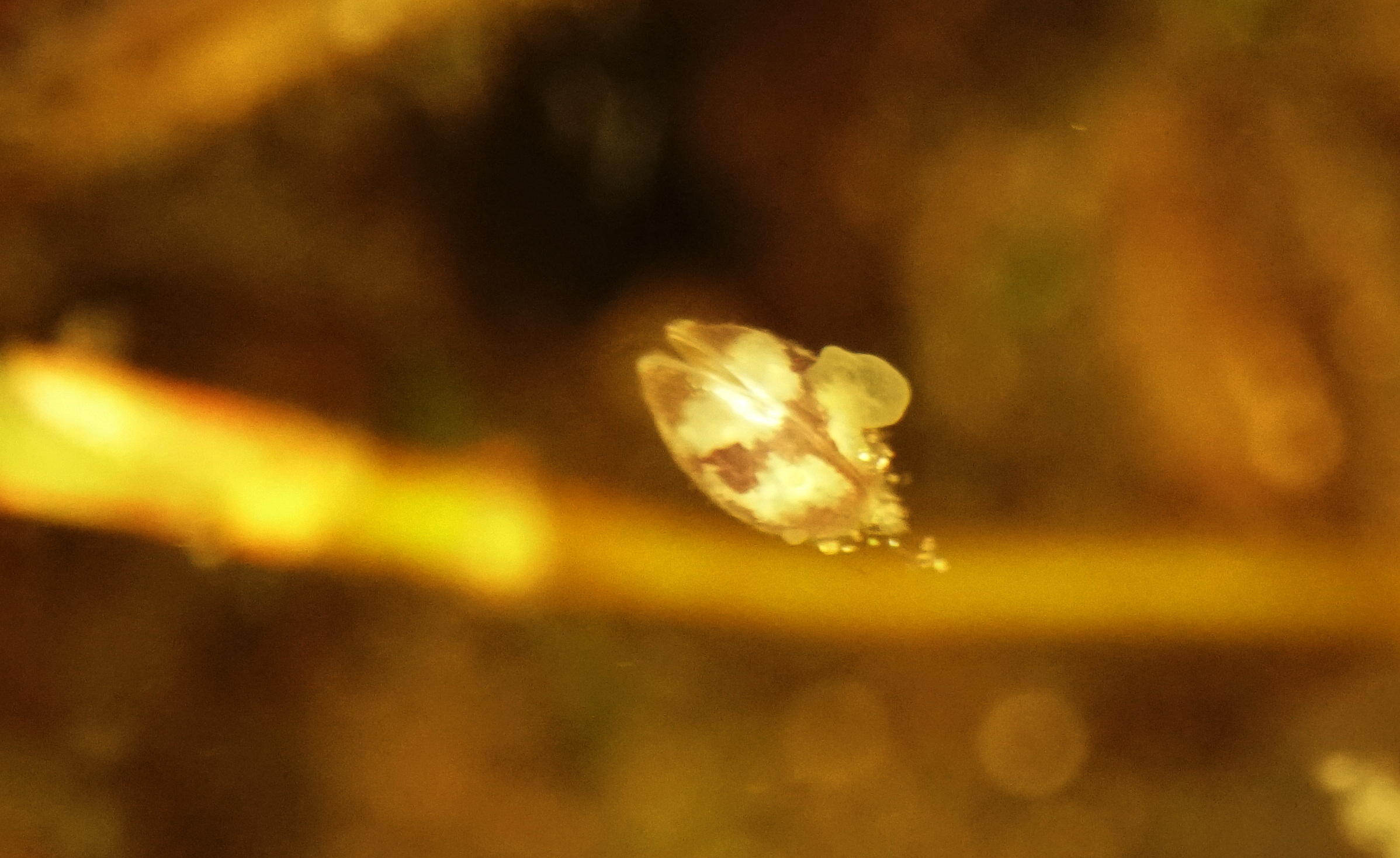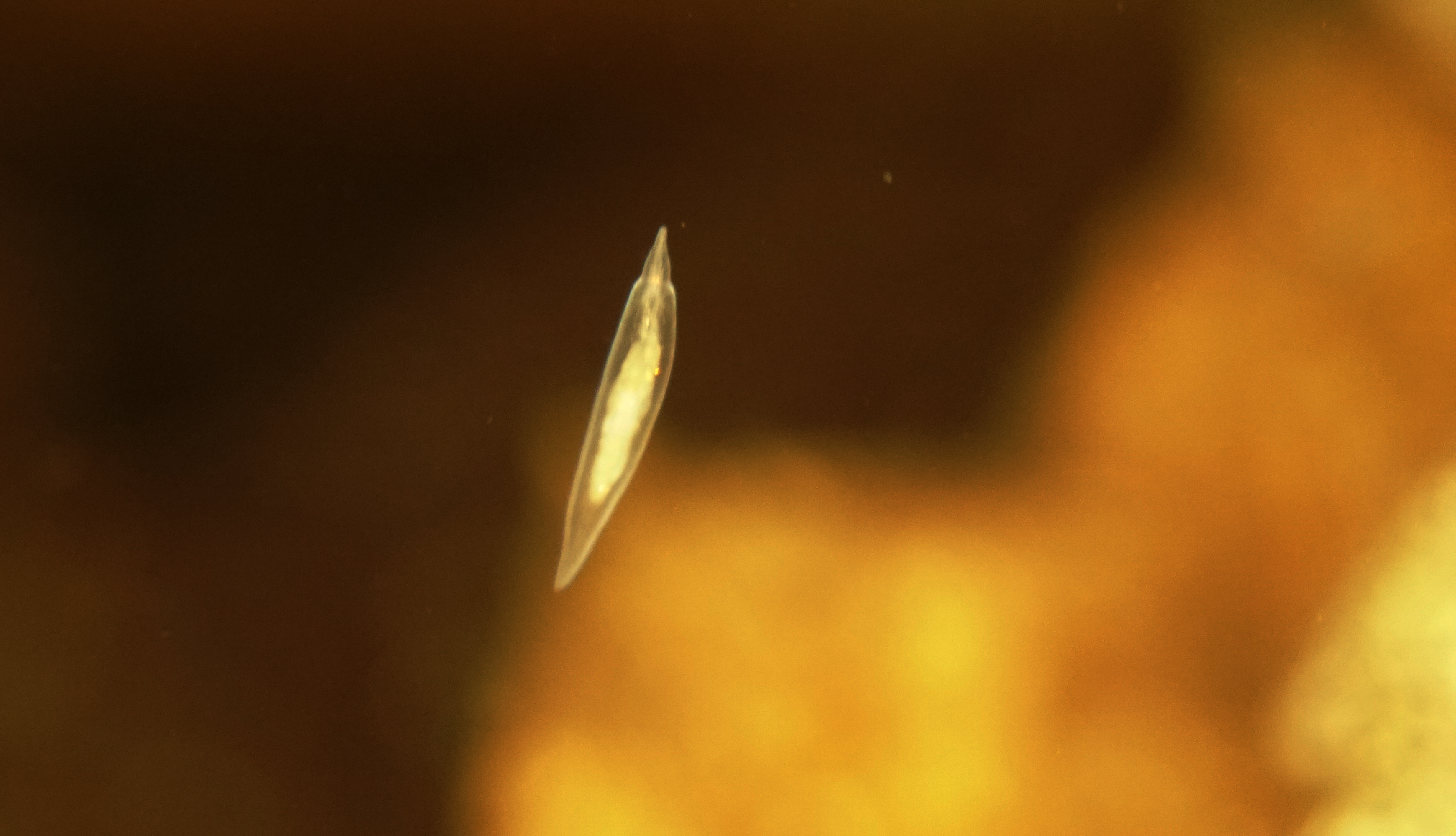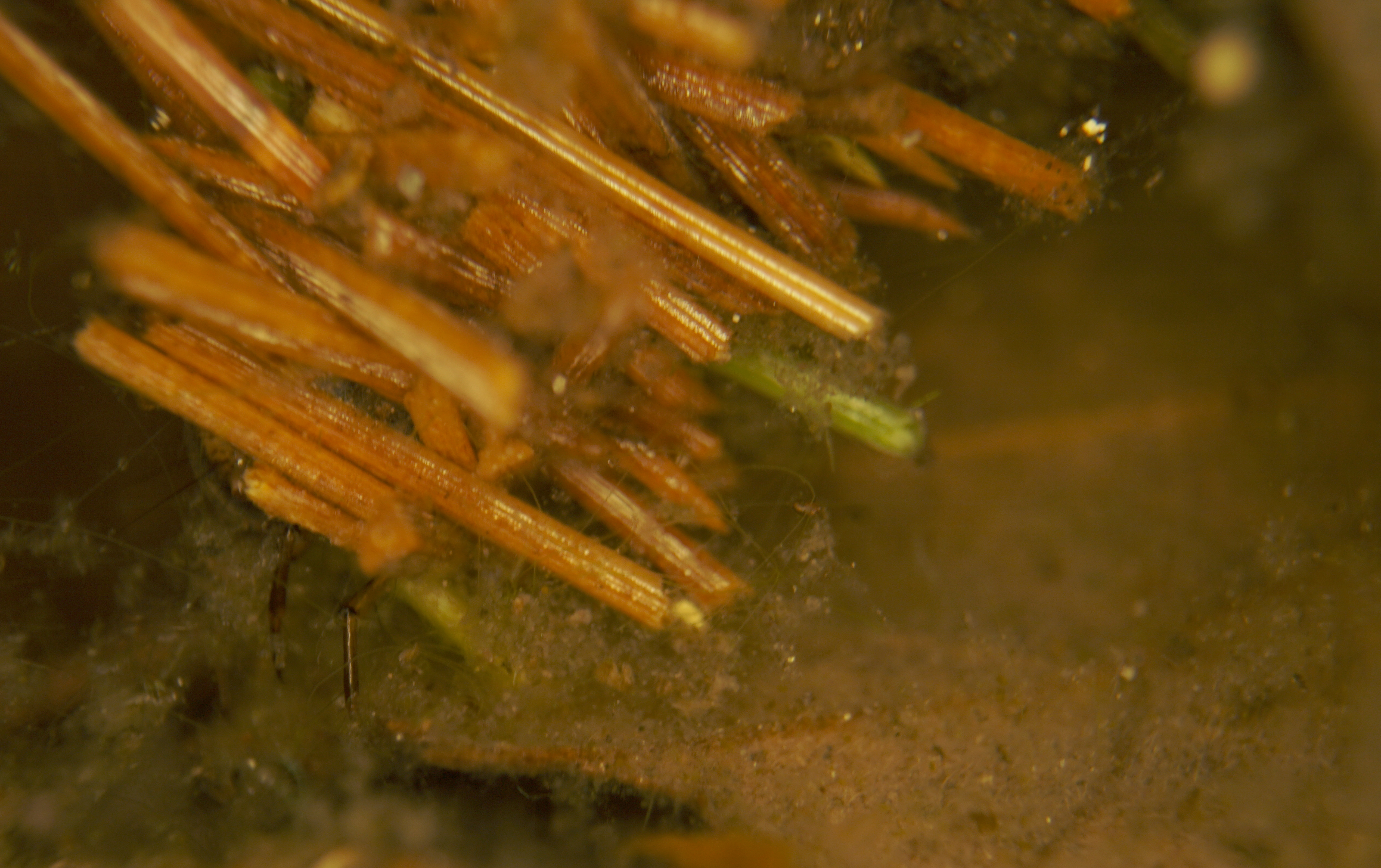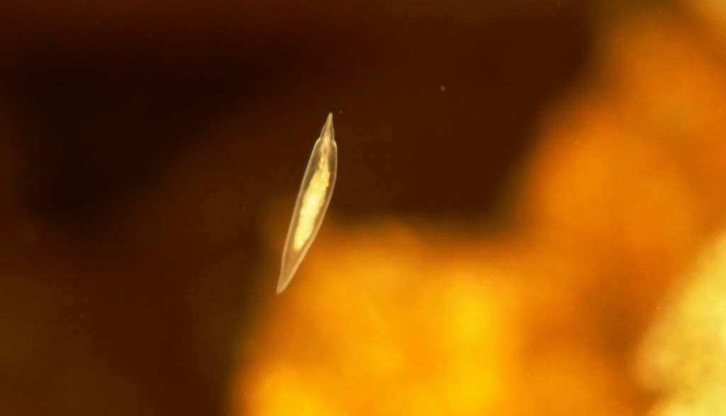 Caddisfly larva casing, and you can see the caddisfly larva itself sticking out in the lower left.