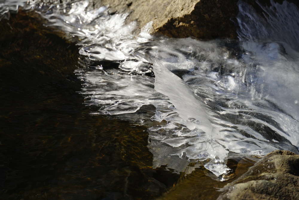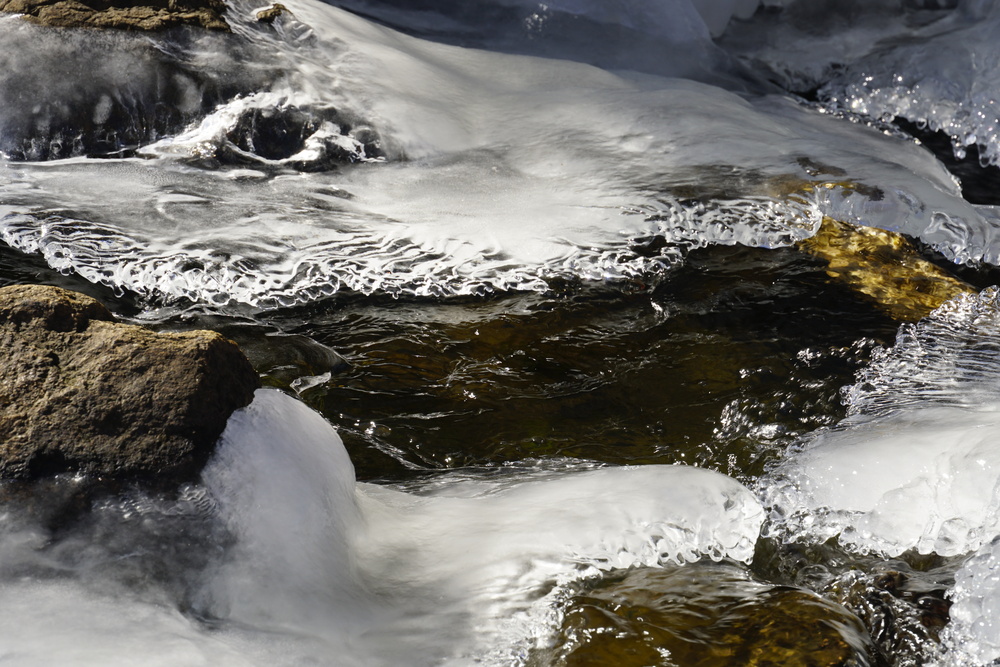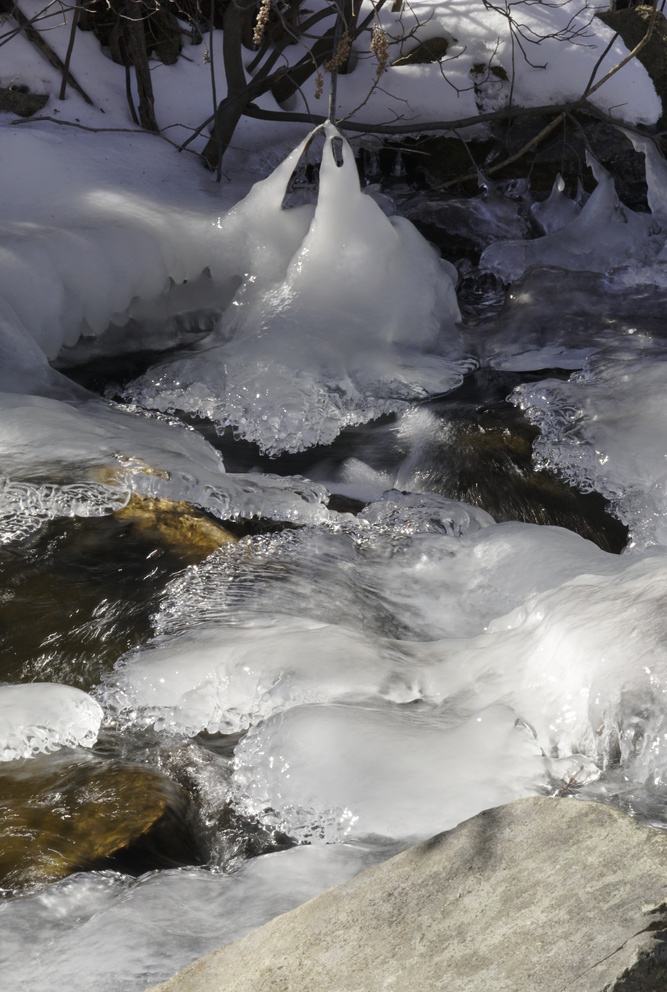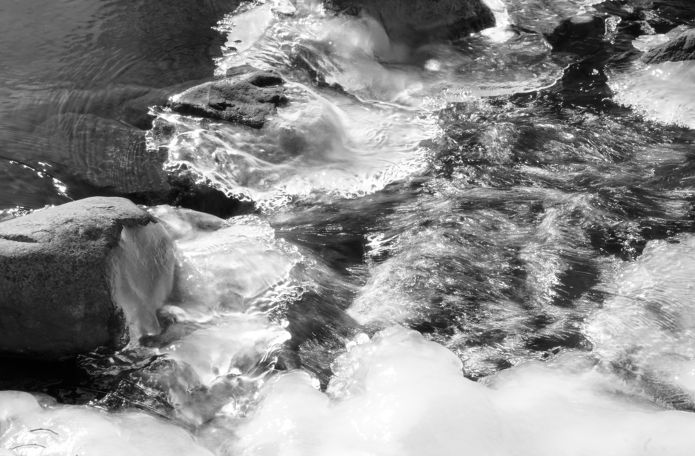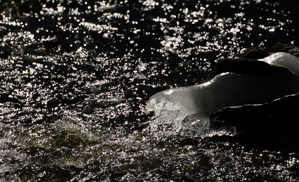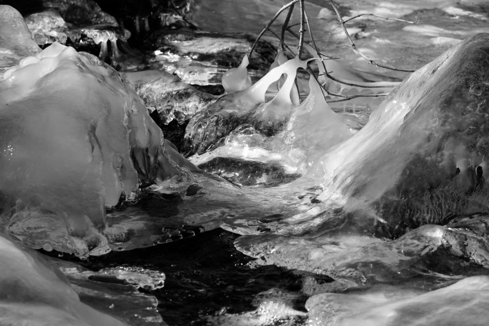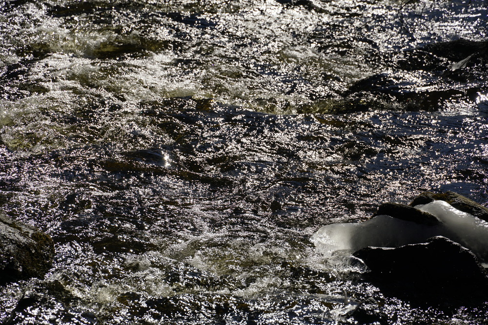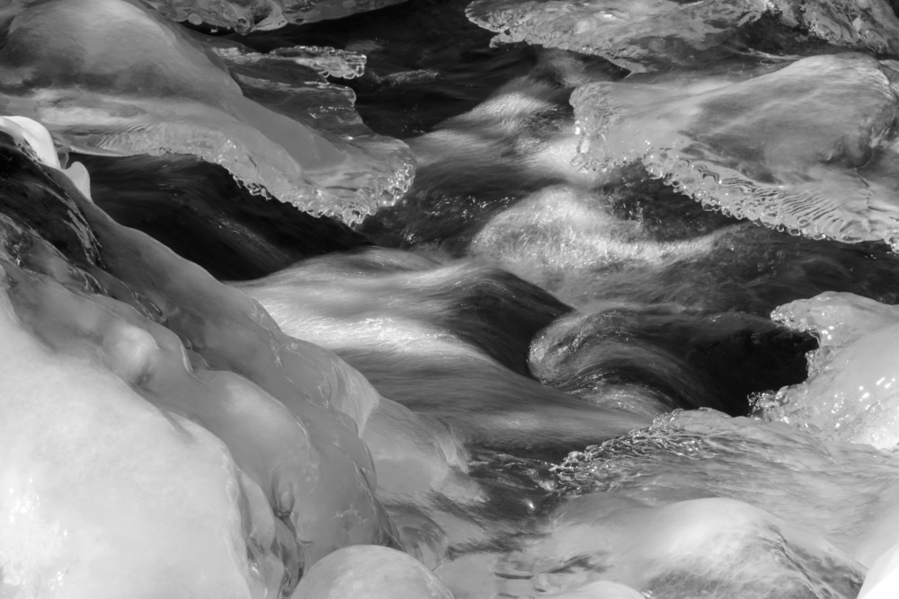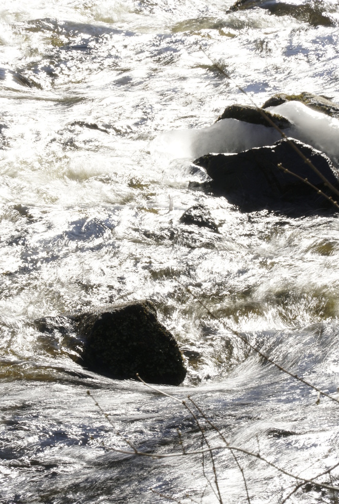 A bright sunny afternoon after a cold spell. A lot of exploration of how the sun landed on the current and on the ice. Shooting into the sun was a lot of fun! A lot of black and white, maybe too many?