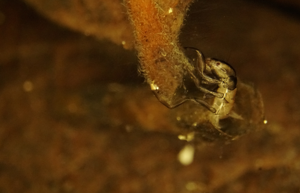 A predaceous diving beetle. There were tons and tons of them. Every now and then one would climb out like this.