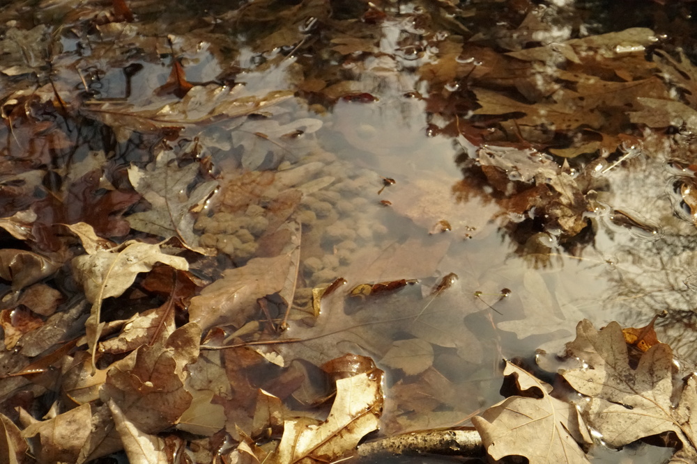 With regard to those “globules” you had observed (and photographed), If they are not a type of aquatic/aero-aquatic fungus, then they most likely are Spotted Salamander spermatophores. These are picked up by a female salamander, fertilized internally, and then in a few days she deposits them (as egg masses) on vegetation in a seasonal pool. *And remember, along with that unique matrix covering them below water, they can often appear opaque in color, so quite different from Wood Frog egg masses. Of course, both A Field Guide to the Animals of Vernal Pools by Kenney and Burne, and Vernal Pools: Natural History and Conservation by Colburn are terrific resources that will impart much, much more information.