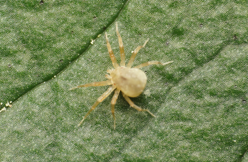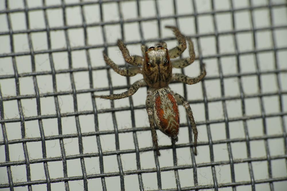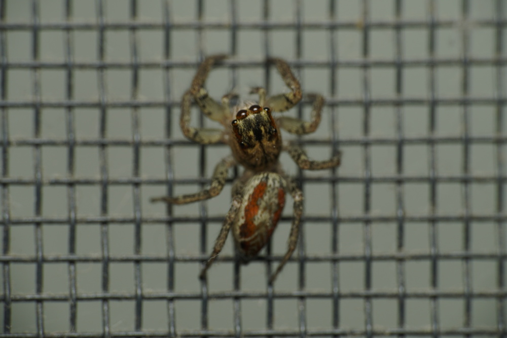 Dimorphic jumping spider, Maevia inclemens, at home