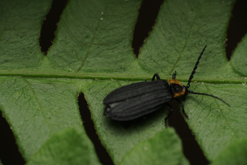 Lucidota atra in Lampyridae? EDIT: Plateros in Lycidae suggested instead. Perhaps the distinguishing feature is the absence of a carina (keel) on the pronotum.