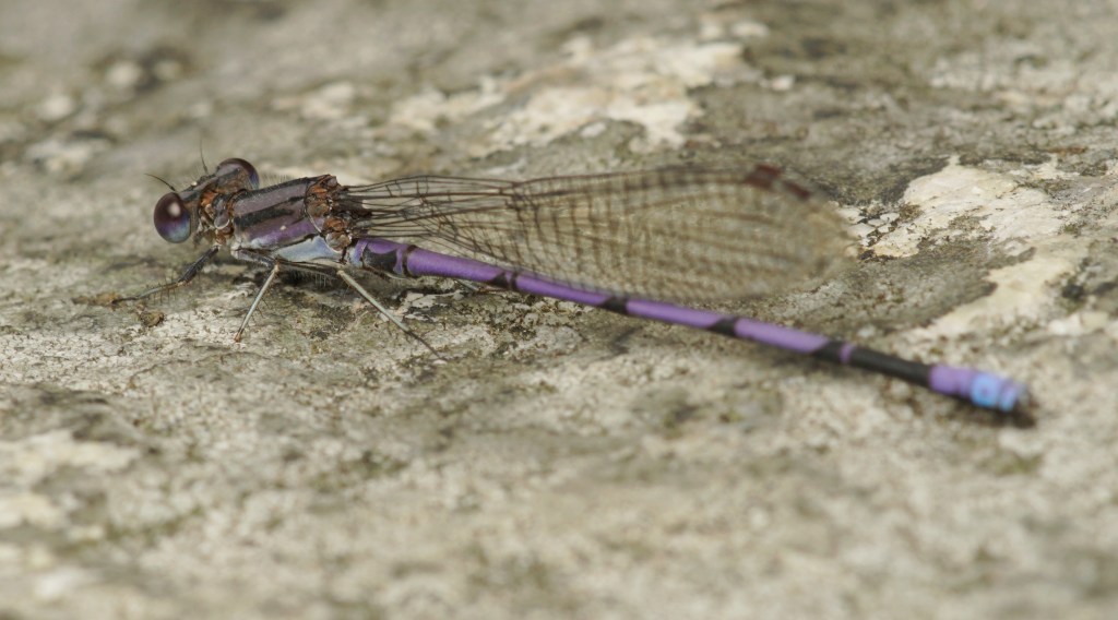 And an adult damselfly. Variable/violet dancer, I think — genus Argia.