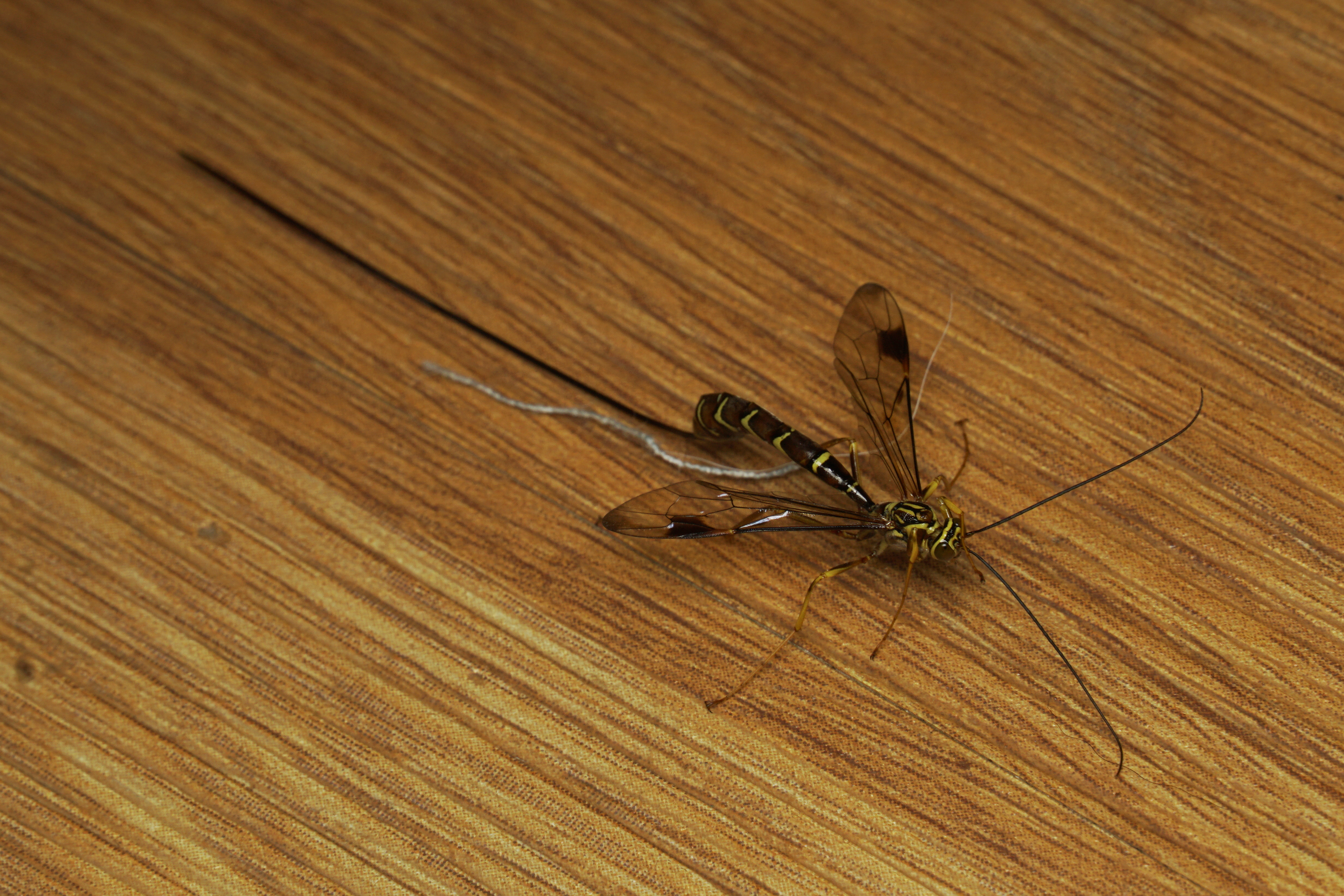I’ve been searching for a Megarhyssa (Giant Ichneumonid Wasp) in Sharon for decades without success (found one in New Brunswick, Canada, though). Weirdly enough, I find one in my basement lying on the floor. I have no idea how she got in, or why, but I appreciate her cooperation.