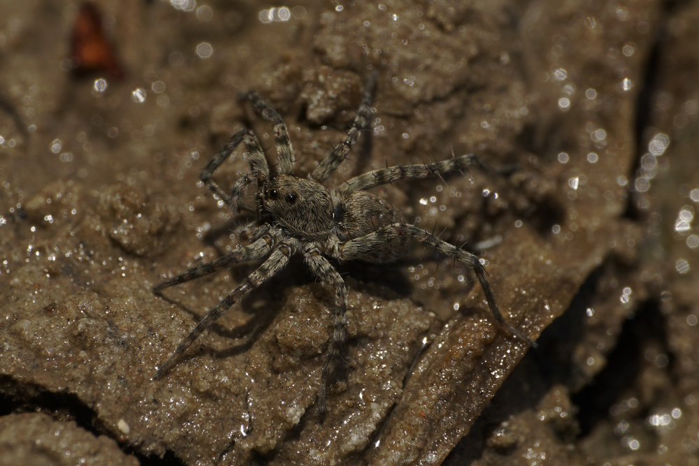 I got a lot of (quite poor) photos of this spider, but I don’t know how to pin down the identification. I’m going to guess Lycosidae at least as a start, but I’m not sure of even that.