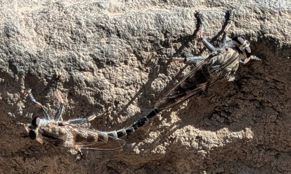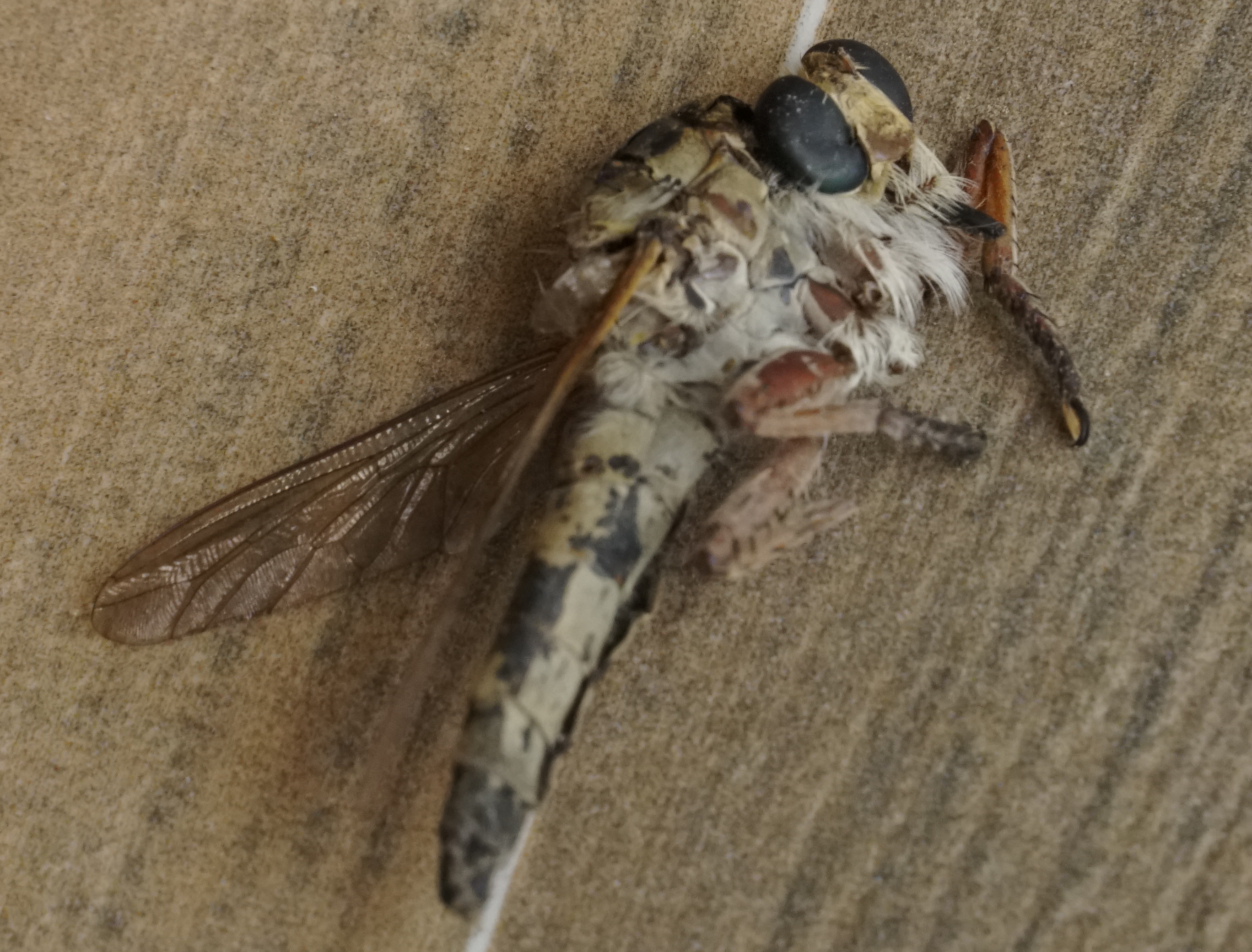 A gorgeous but sadly recently expired robberfly (Asilidae, probably subfamily Asilinae):