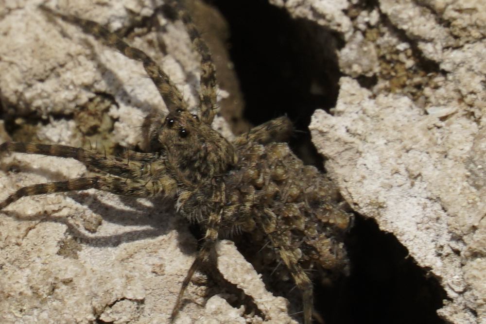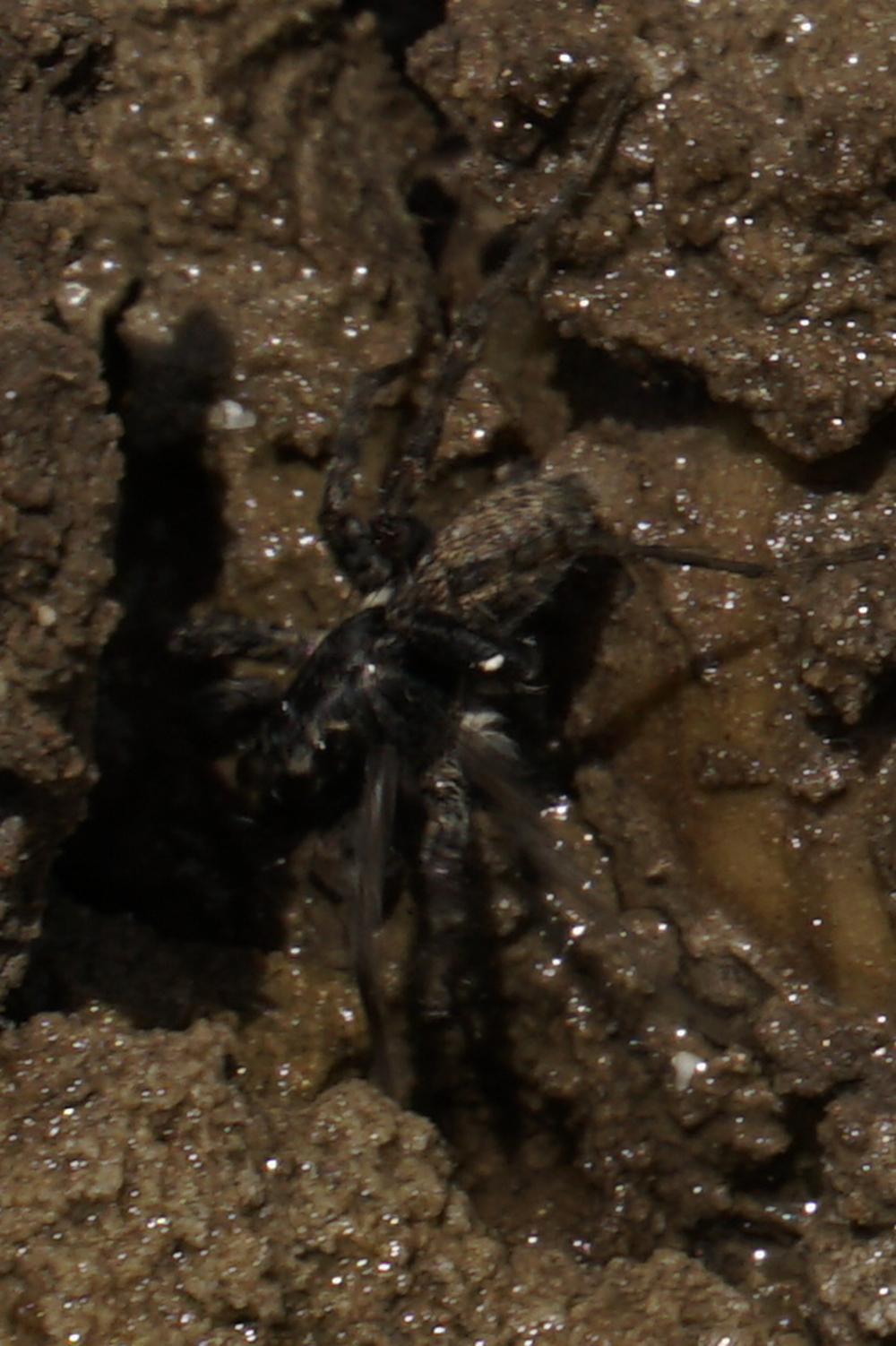 I got a lot of (quite poor) photos of this spider, but I don’t know how to pin down the identification. I’m going to guess Lycosidae at least as a start, but I’m not sure of even that.