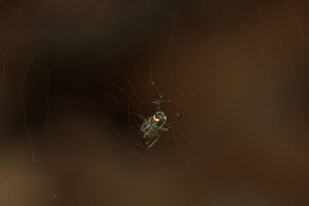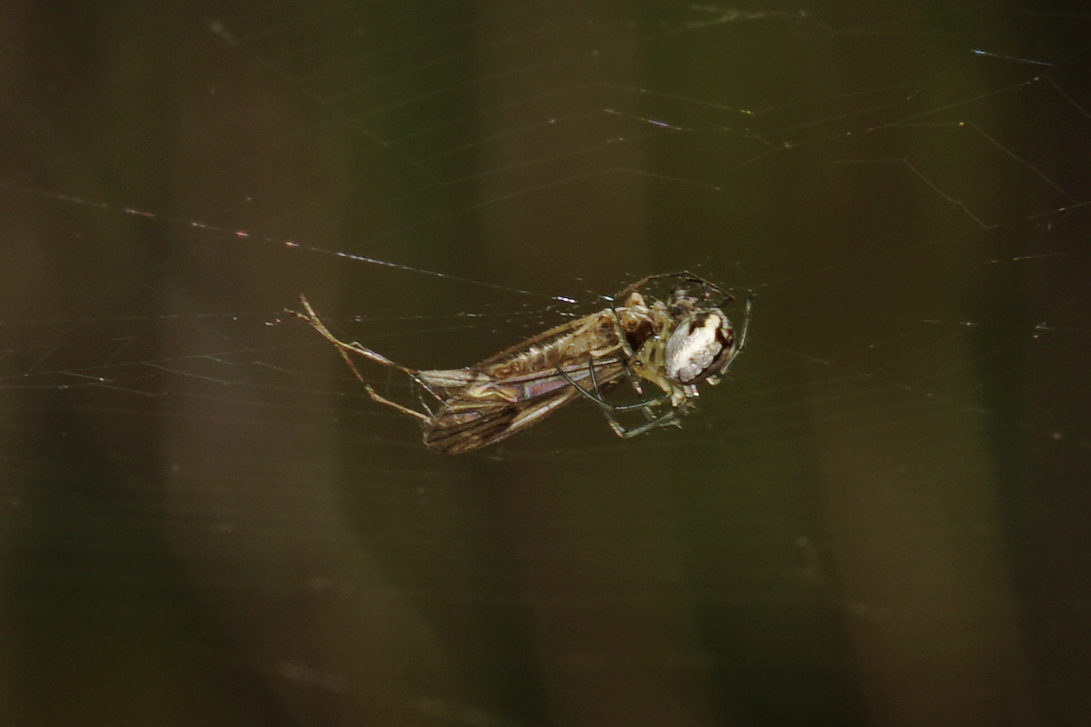 Leucauge venusta and prey. Leucauge venusta is an early season staple.