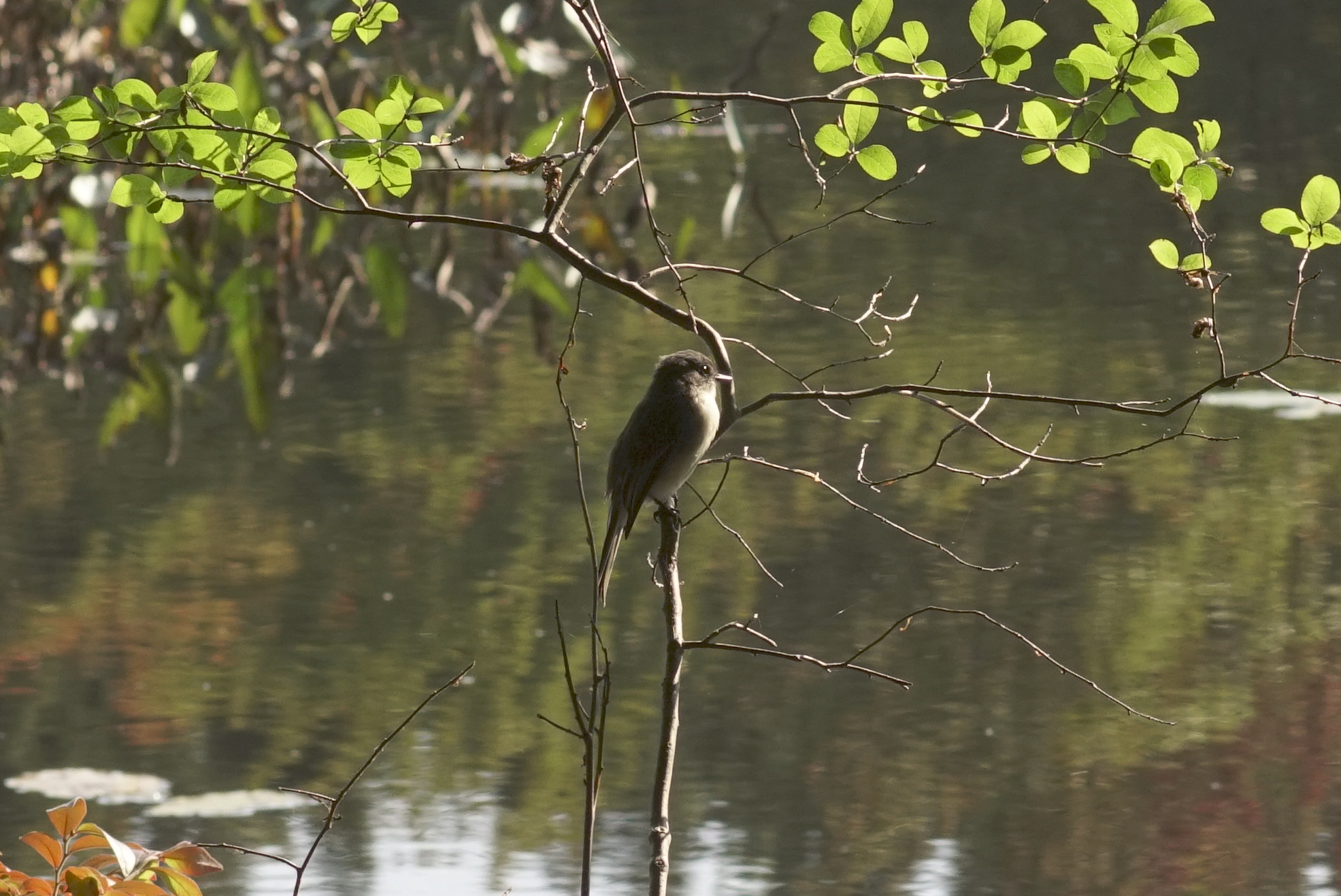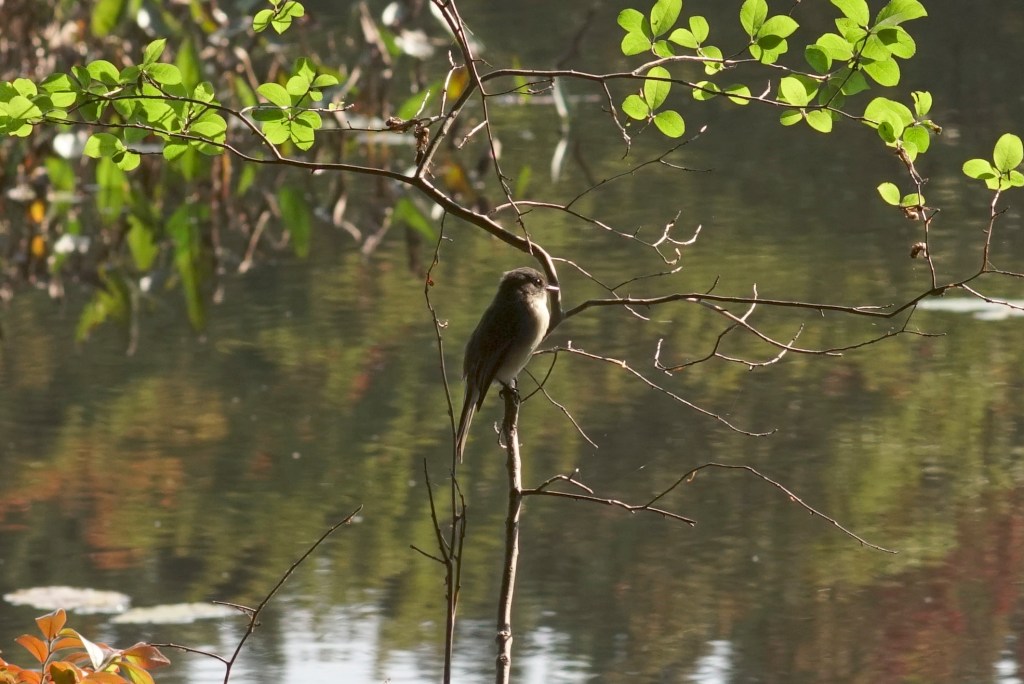 Autumn bird identifications are tough, but I guess some sort of flycatcher, perhaps a Tyrant Flycatcher? Maybe a phoebe? I don’t know.
