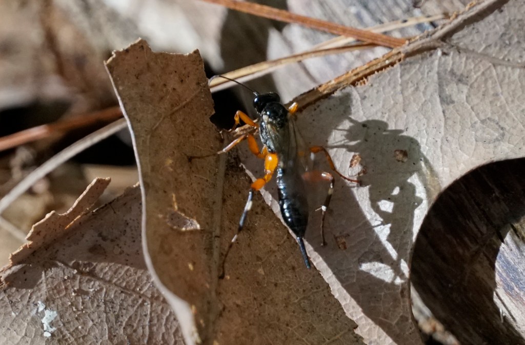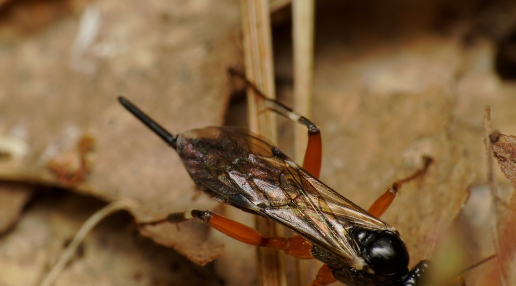 Today I was able to capture another one that everyone else seems to get but I’ve been left out of: a Pompilidae (spider wasp) dragging a paralyzed spider along. Details below!