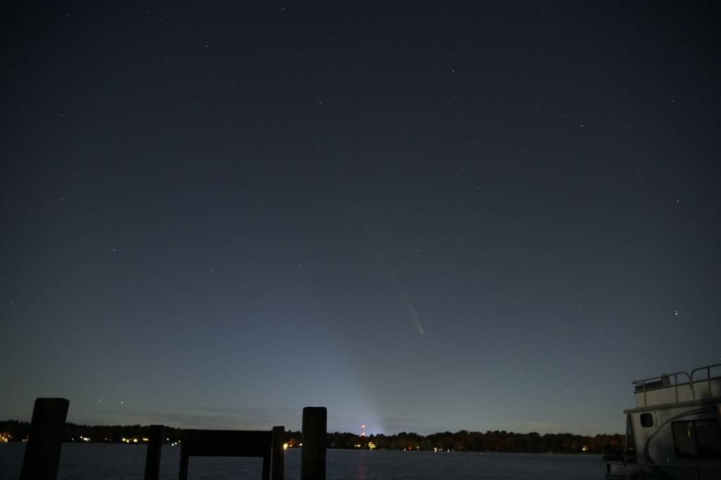 Cropped and a bit more contrast. You can see the coma a bit — I think? The view optically through the 15×70 binoculars definitely had more detail.