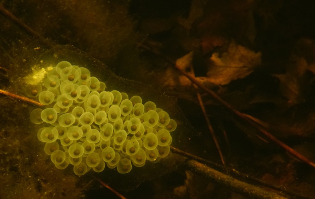 Salamander egg. Probably Ambystoma, spotted salamander.