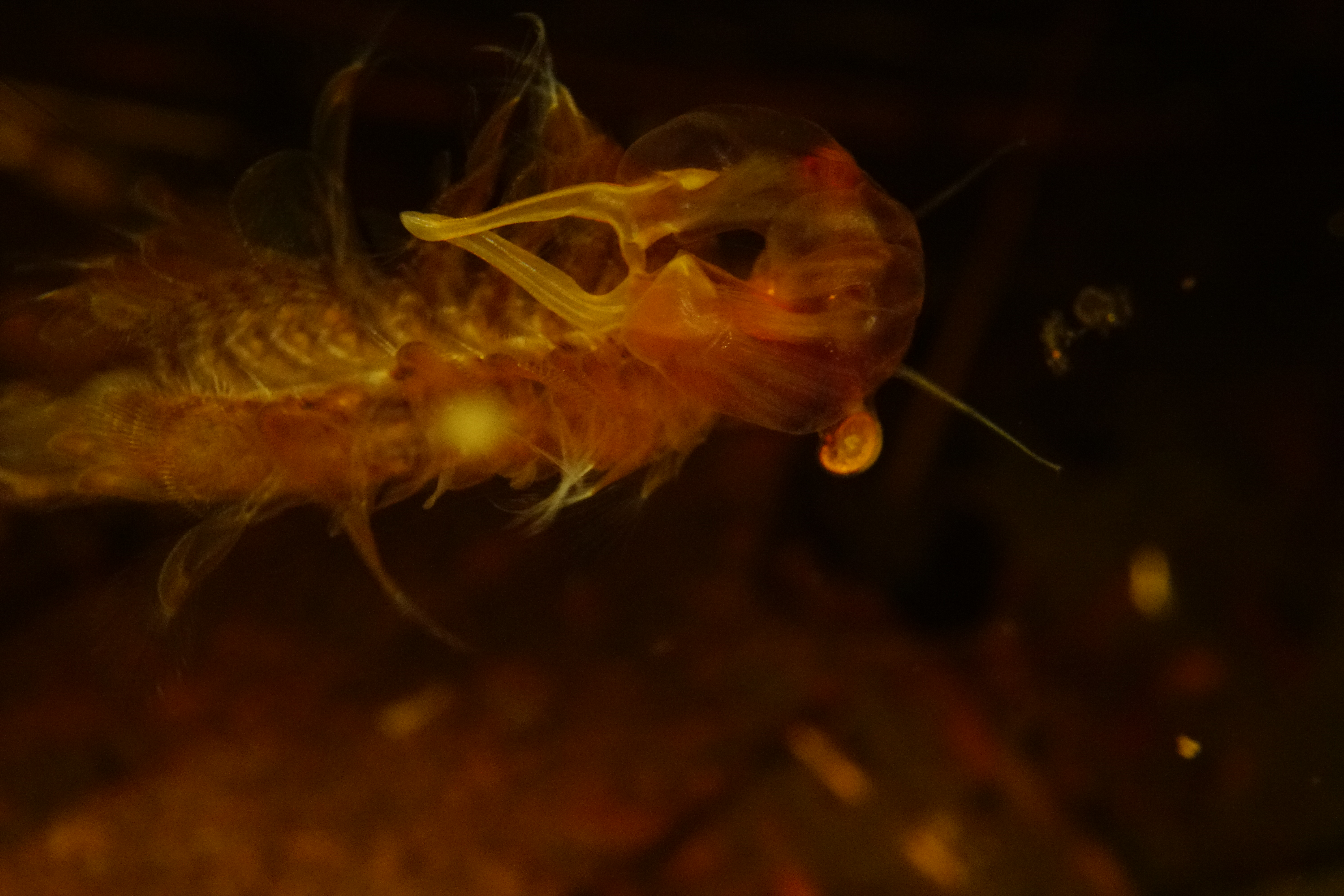 I was recording a midge to show its writhing behavior, when a fairy shrimp photobombed. It was that kind of day.