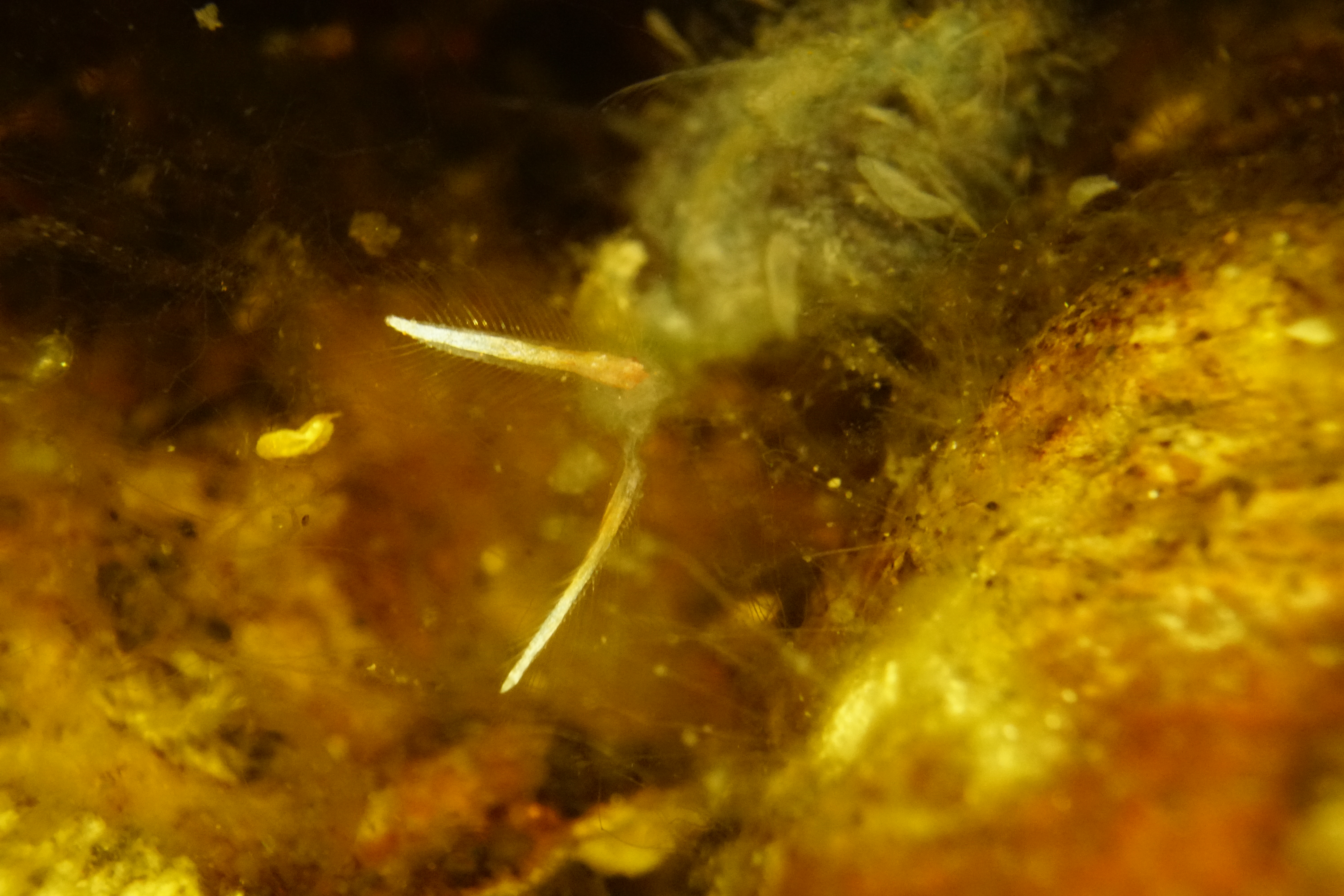 And I have no idea what I’m looking at here. EDIT: probably Atherix, which would make it the first sighting in Massachusetts for the genus (as always, I actually mean the first record in BugGuide and iNaturalist). These are gill-like terminal appendages. I saw the rest of the creature, and it does look like Atherix larvae, but couldn’t get a photo.