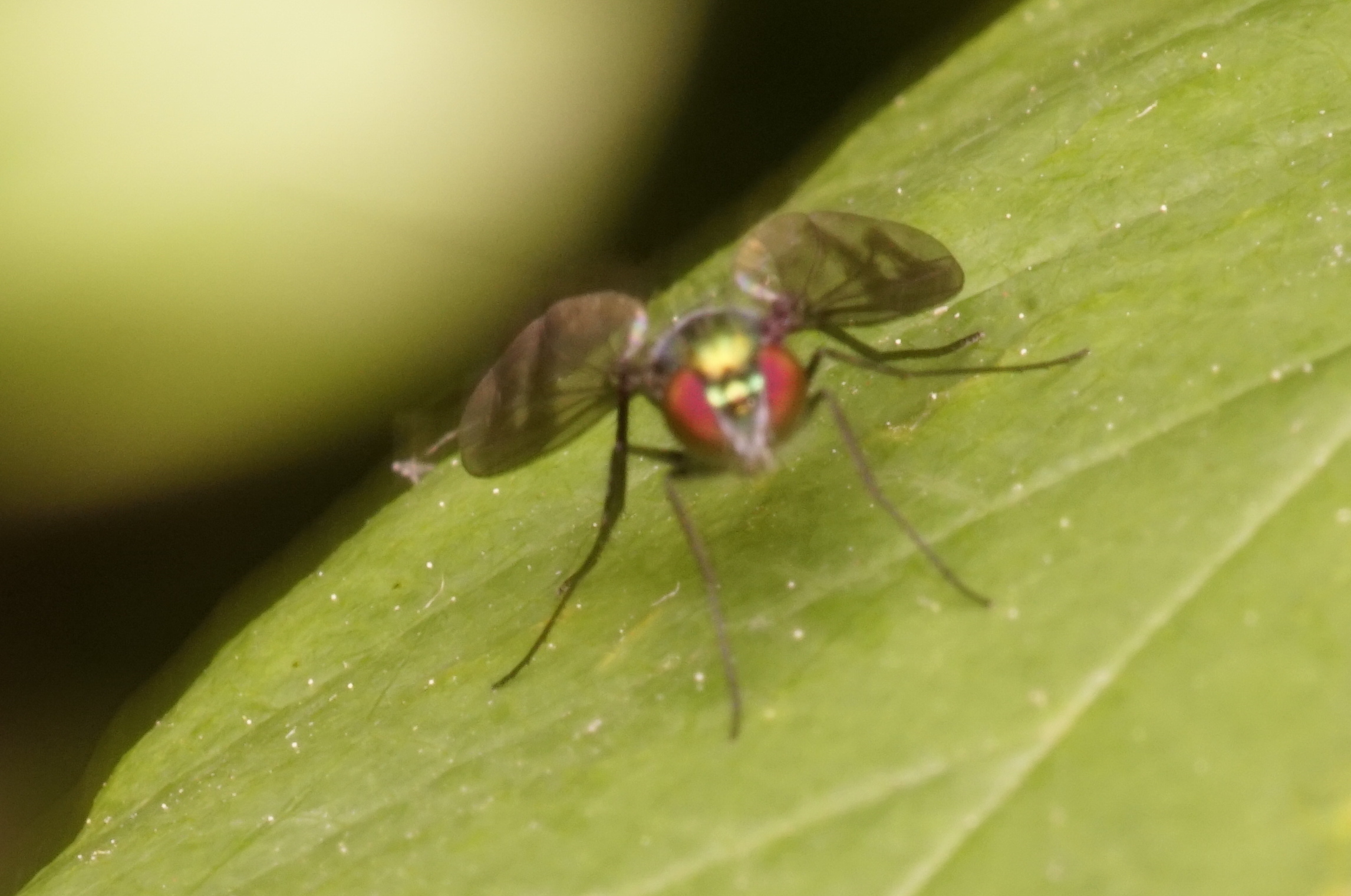 Dolichopodidae, something like Condylostylus. I think it was a male displaying its wings to attract a female.
