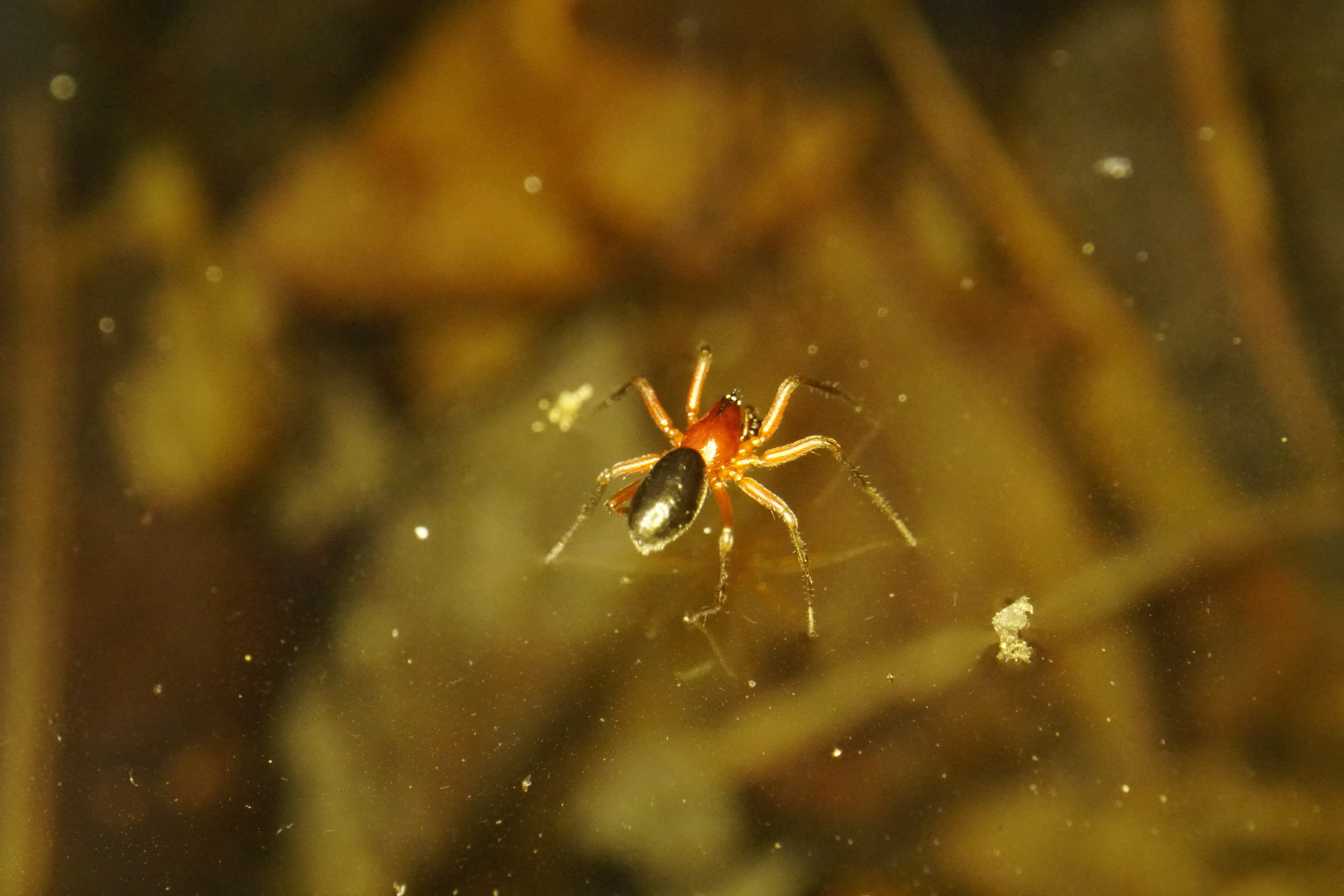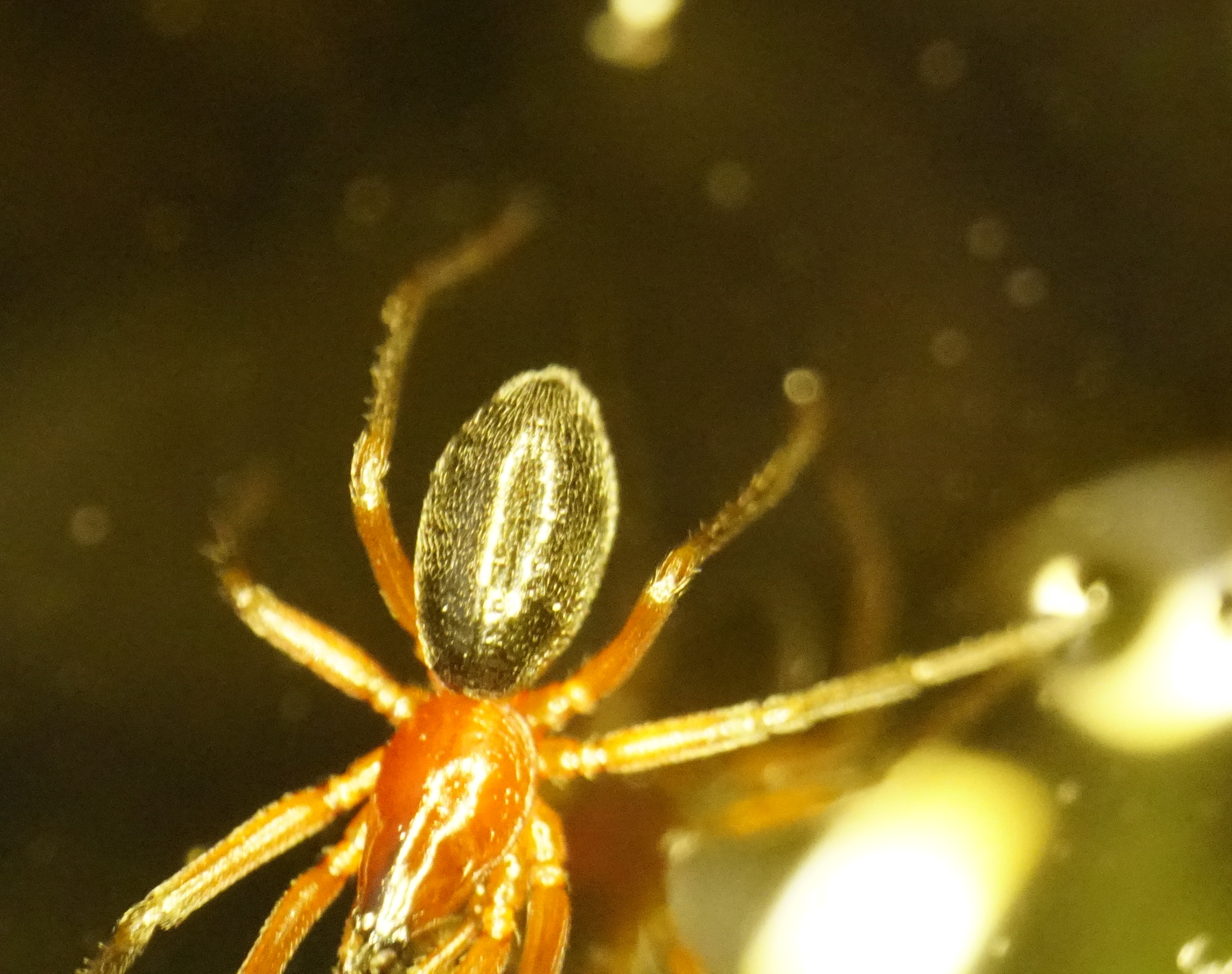 Not a very good photo of a beautiful spider, Pirata in Lycosidae (wolf spiders), walking on water: